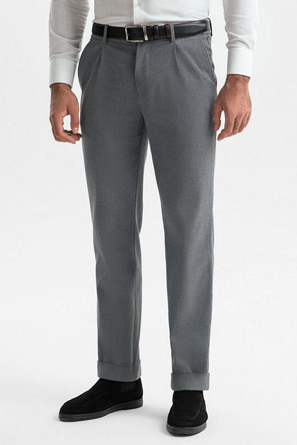 Темные брюки гармонируют с белой сорочкой, черным кожаным ремнем и туфлями-оксфордами для делового образа. В сочетании с клетчатой рубашкой, пиджаком полуприлегающего силуэта из шерсти и ботинками челси подойдут для менее официального лука. Кремовые и светлые можно носить с нежно-голубой рубашкой навыпуск, замшевыми ботинками и легким стеганым демисезонным жилетом — неплохое решение для романтического вечера.