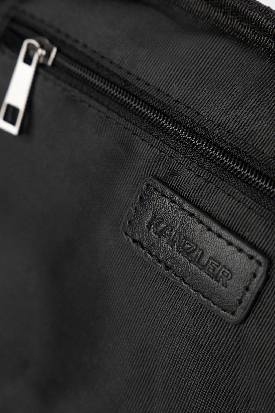 Поясные сумки давно вышли за пределы спортивного стиля и стали универсальным аксессуаром, который носят с повседневной городской одеждой. Черная поясная сумка KANZLER из гладкой натуральной кожи и технологичного текстиля с фирменной нашивкой — не исключение. Это стильный и практичный элемент любого современного образа. В сумке легко поместятся ключи, телефон, кошелек, документы и другие необходимые вещи. Молния по всей длине предоставляет удобный доступ к содержимому. Регулируемый ремень снабжен надежным замком, конструкция которого предотвращает случайное открытие.