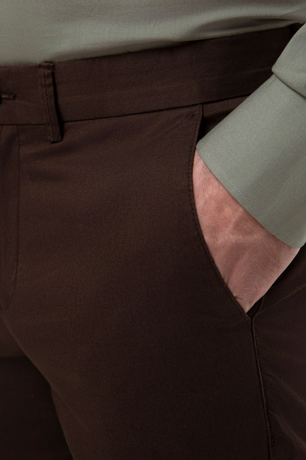 Брюки KANZLER глубокого коричневого оттенка с боковыми и задними карманами — универсальная повседневная модель, которая гармонично сочетается с одеждой спокойных цветов в стиле кежуал или урбанистический. Лаконичный и функциональный крой служит удобству. Такие брюки приятно носить на работе, прогулке по городу и в поездке. Практичный износоустойчивый материал прослужит долго. Он сделан из натурального хлопка (97%) с добавлением эластана (3%) — для прочности, хорошей посадки и сохранения формы ткани. Параметры модели: рост 189, 102-80-99 Размер на модели: M