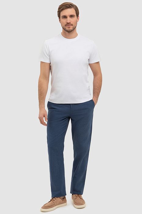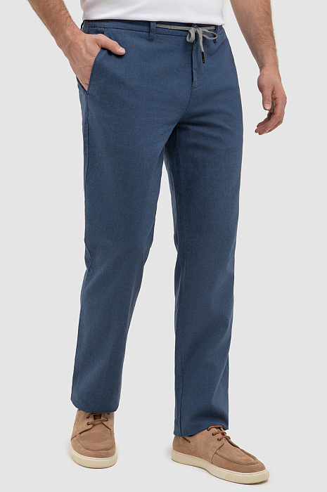 Брюки изо льна и хлопка, цвет синий, цена 69 990 тенге, код 267344 - купить в Астане в интернет-магазине KANZLER