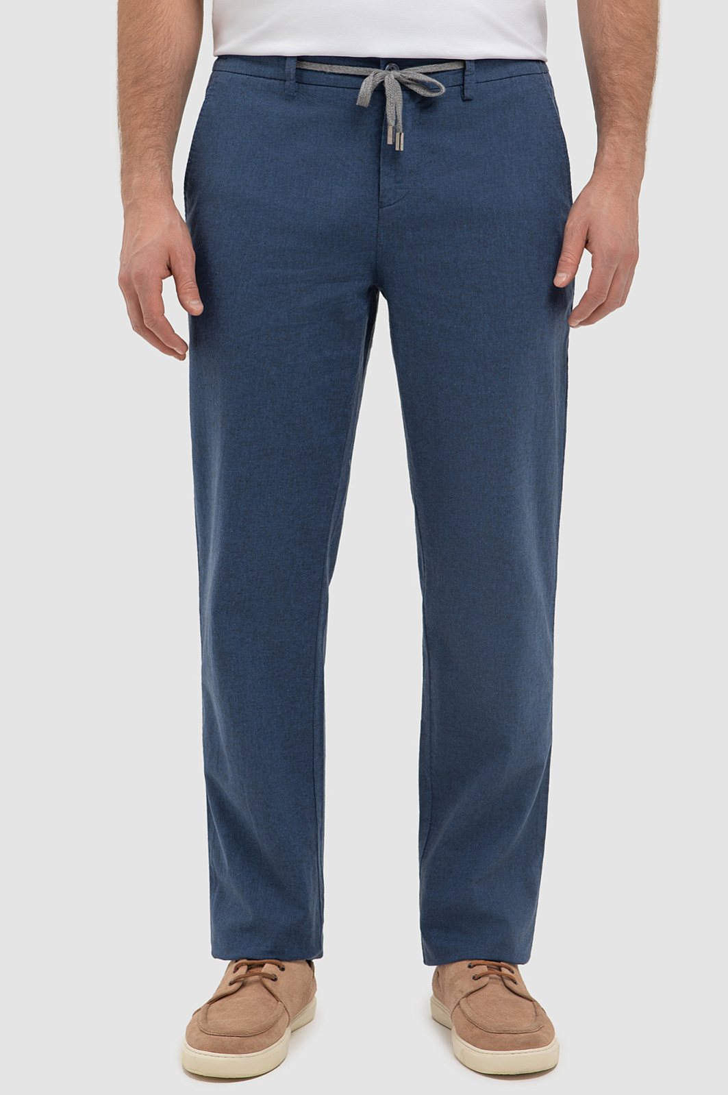 Синие брюки изо льна и хлопка