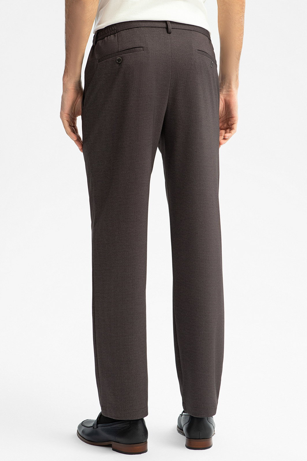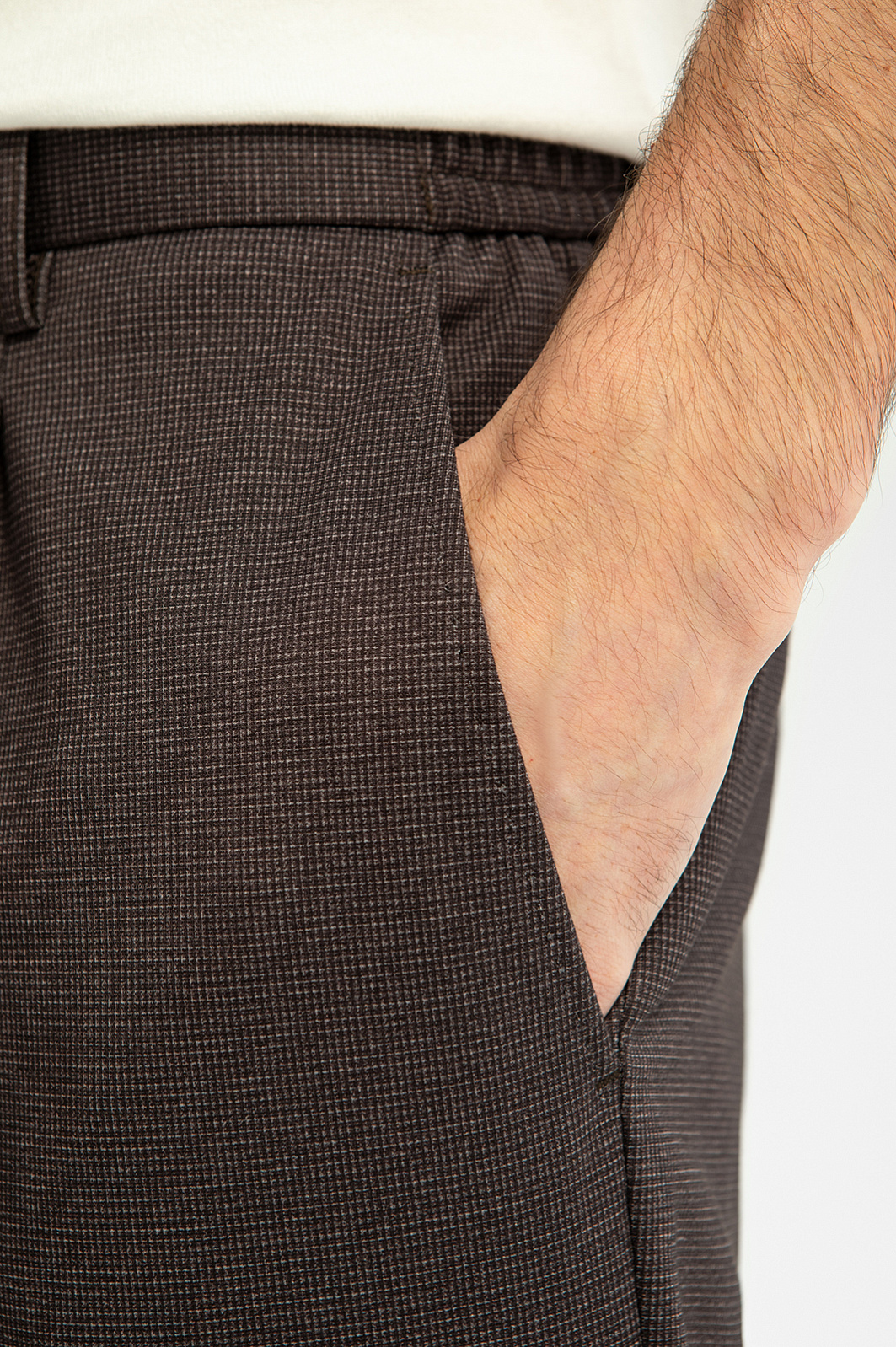 Коричневые брюки KANZLER на кулиске идеально соответствует офисному дресс-коду, который в наши дни становится все более расслабленным. Умеренно свободный крой с легкими защипами спереди подходит для любого типа фигуры. В отличие от жесткого пояса, кулиска легко регулируется и не создает давления по линии талии. Современная технологичная ткань в мелкую клетку практические не мнется. Чтобы восстановить форму брюк после дня в офисе, достаточно расправить их вечером на вешалке. Для создания костюма брюки можно дополнить коричневым однобортным пиджаком KANZLER. Параметры модели: рост 192, 101-76-97 Размер на модели: 50