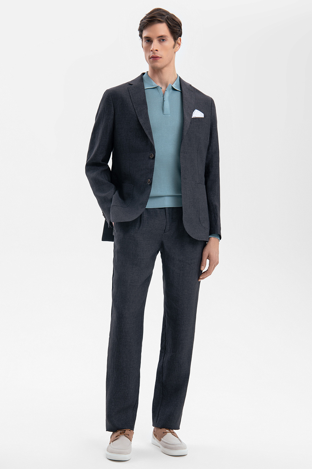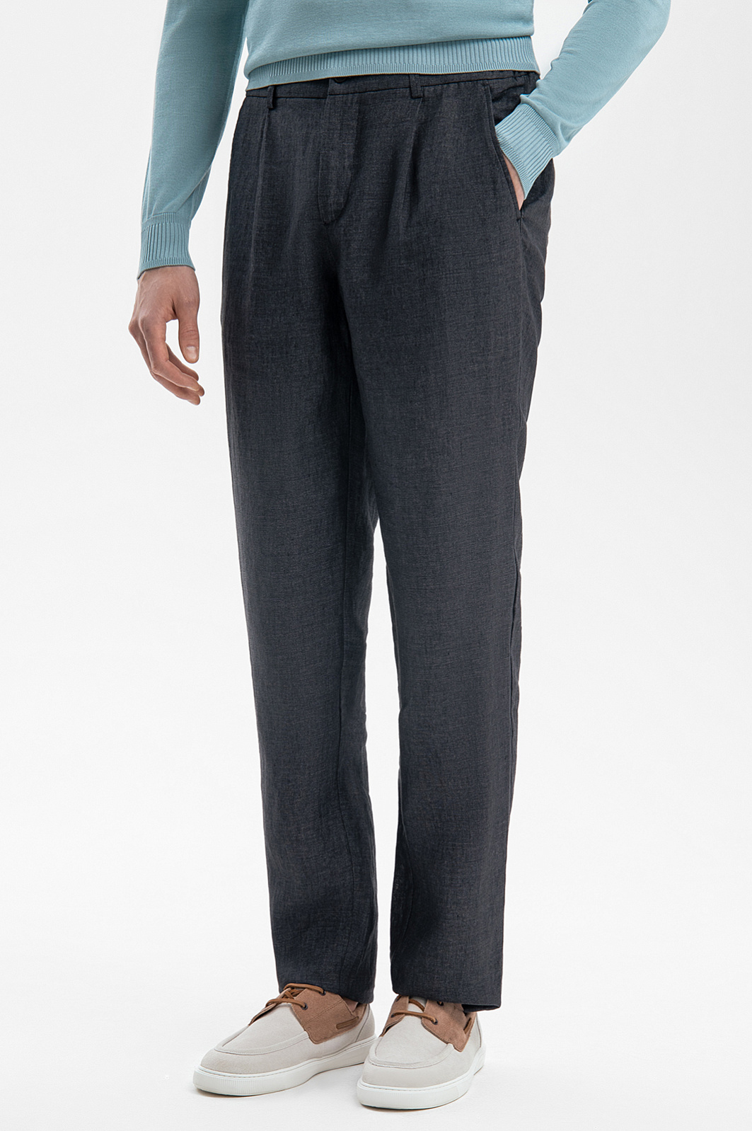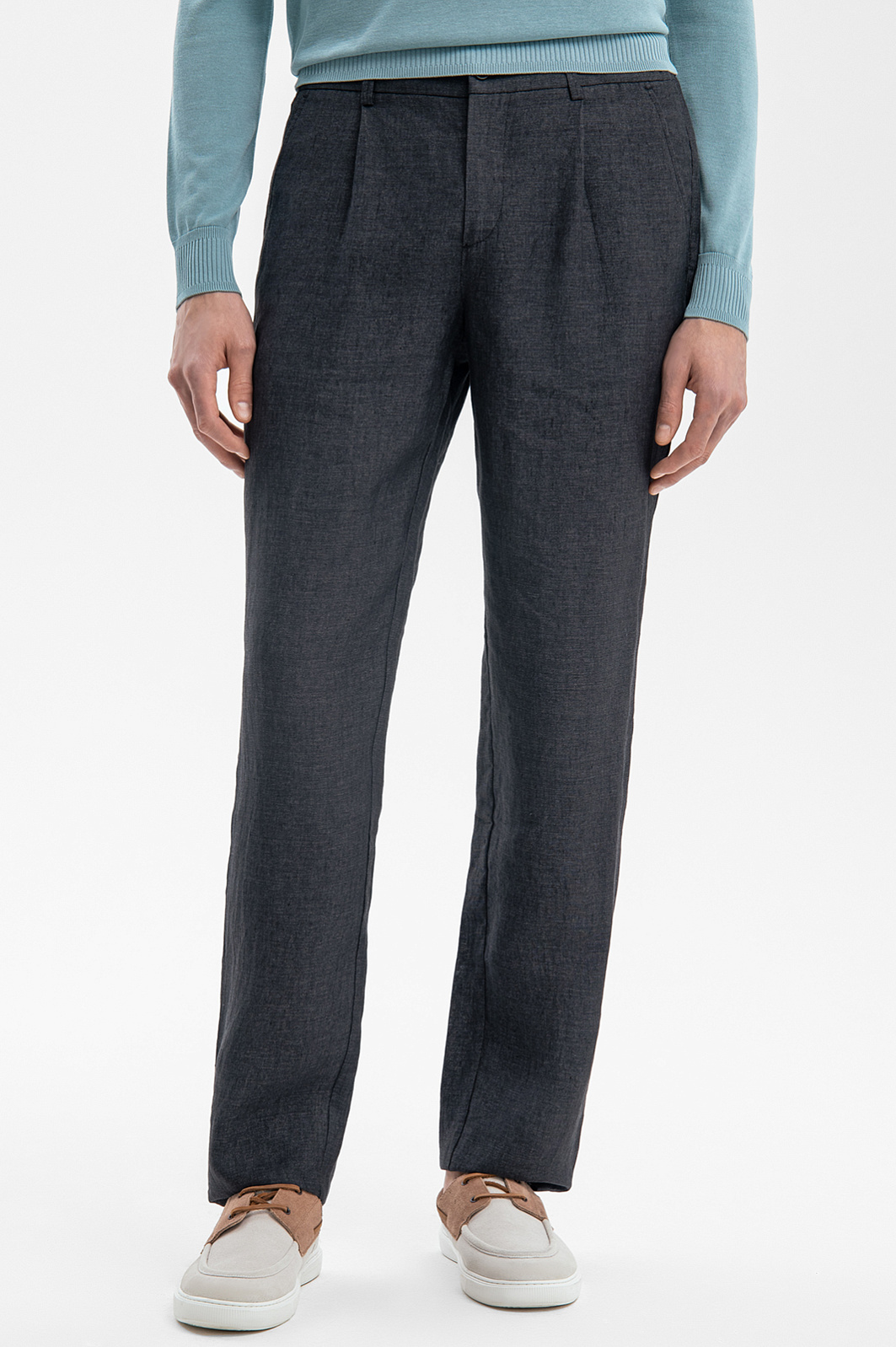 Дизайн роскошных темно-серых брюк KANZLER из лимитированной коллекции задан чистыми линиями и свободным силуэтом. Модель сшита из дорогой льняной ткани, которую производит итальянская фамильная мануфактура Vitale Barberis, основанная более 360 лет назад. Удобный Классический крой с мягкими защипами комплементарно смотрится на фигуре любого типа. Для составления костюмной пары брюки можно дополнить темно-серым льняным пиджаком KANZLER. Суперкачественная фактурная ткань, сотканная изо льна (100%), идеально подходит для межсезонья и теплых дней. Натуральные гипоаллергенные волокна поддерживают циркуляцию воздуха и отводят влагу, создавая приятную для тела температуру. Параметры модели: рост 189, 91-78-95 Размер на модели: 50