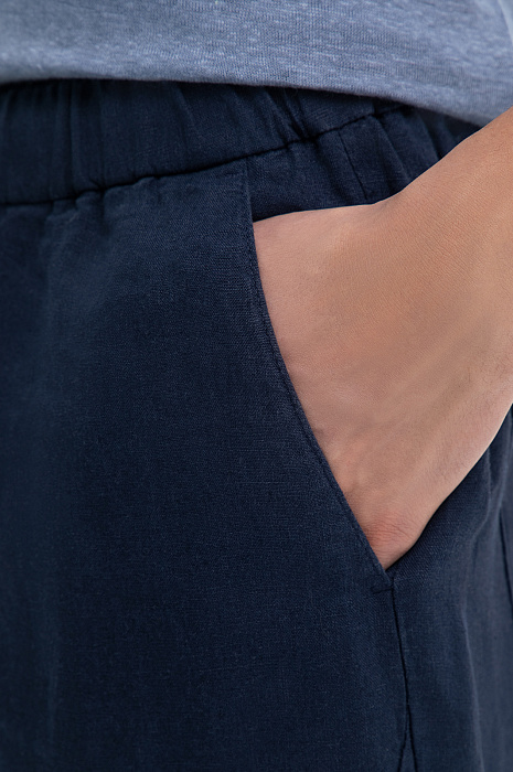 Брюки изо льна на кулиске, лимитированная коллекция, цвет синий, цена , код 269611 - купить в Астане в интернет-магазине KANZLER