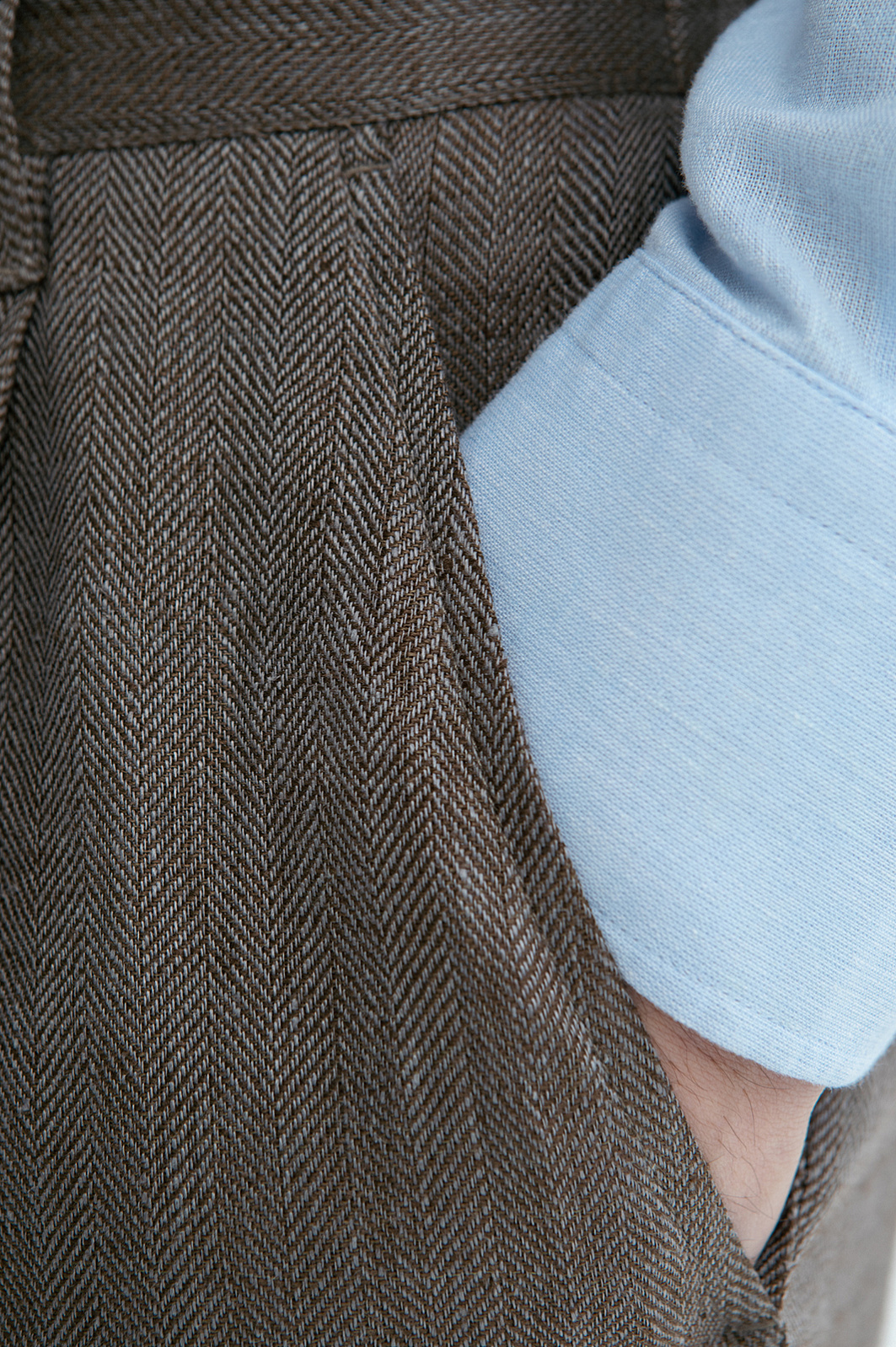 Брюки изо льна, цвет коричневый, цена 109 990 тенге - купить в интернет-магазине KANZLER