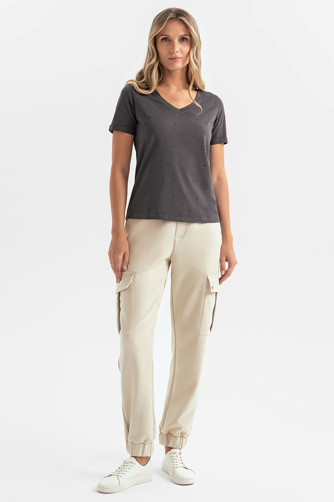 Комфортные трикотажные брюки карго, не стесняющие движений. Выполненные из прочной, легкой пряжи (97% полиэстер, 3% спандекс), они идеально садятся по фигуре и подходят для активного образа жизни. Материал хорошо сохраняет форму и устойчив к износу. Эластичные манжеты создают аккуратный силуэт, а широкая кулиска на поясе позволяет регулировать посадку брюк. Дизайнеры продумали все детали: практичный бежевый цвет, функциональные накладные карманы, трикотажные манжеты, брендированные наконечники и кнопки с изображением журавля, символом свободы и силы. Джоггеры KANZLER прекрасно сочетаются c футболкой и толстовкой на молнии из нашей коллекции. Параметры модели: рост 180, 87-61-91 Размер на модели: S