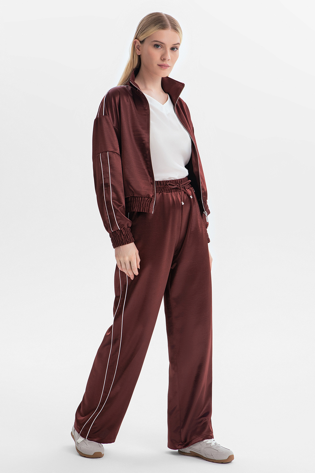 Брюки спортивные атласные с лампасами, цвет коричневый, цена - купить в интернет-магазине KANZLER