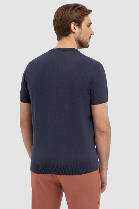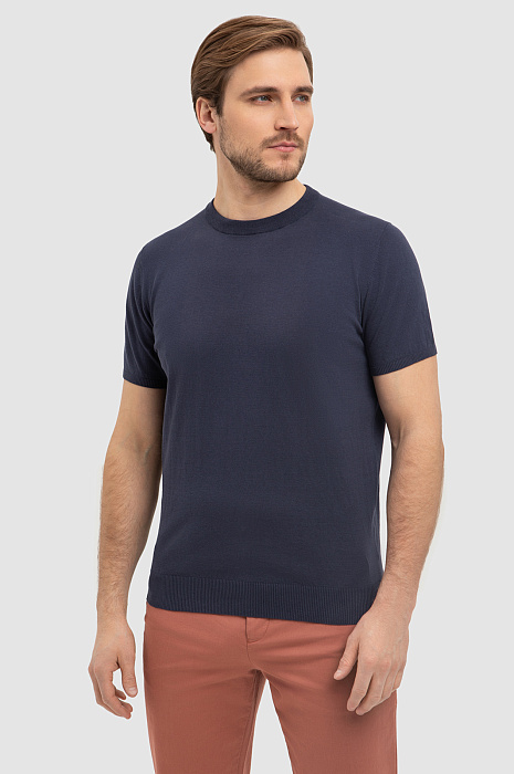 Джемпер с коротким рукавом из хлопка Пима, цвет синий, цена 43 990 тенге, код 267017 - купить в Астане в интернет-магазине KANZLER