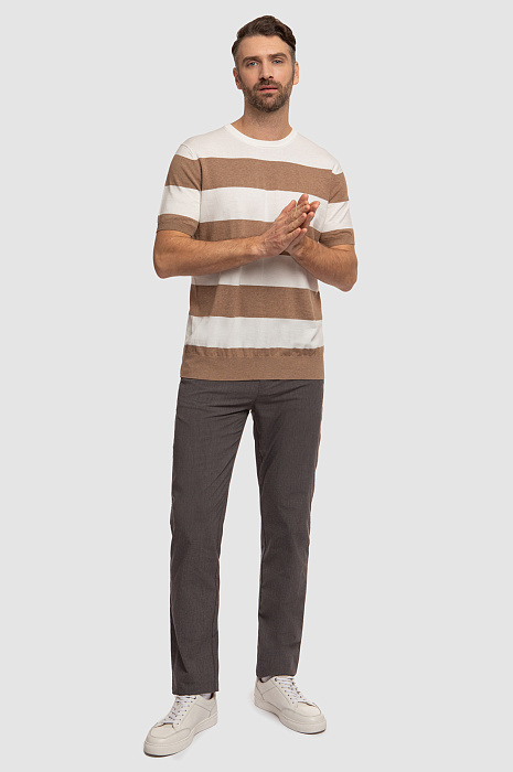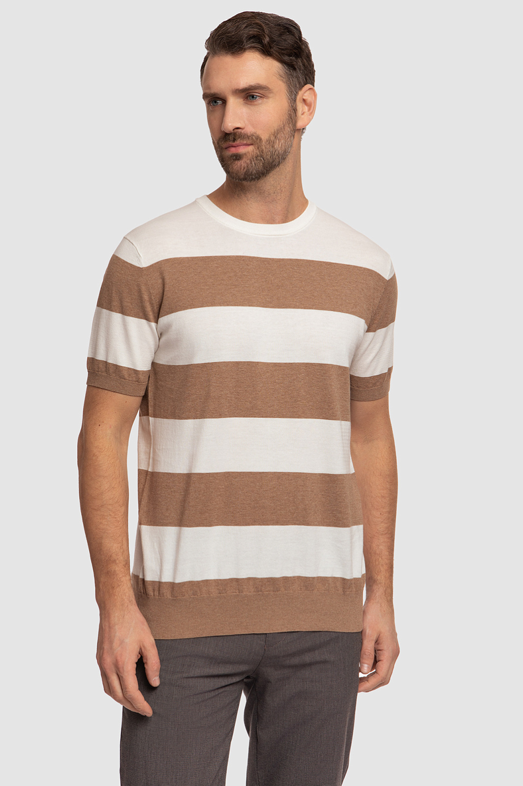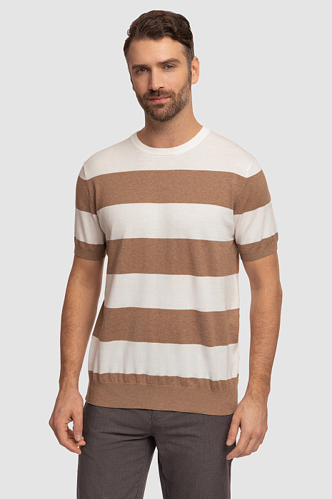 Джемпер с коротким рукавом из хлопка Пима, цвет бежевый, цена 39 990 тенге, код 267247 - купить в Астане в интернет-магазине KANZLER