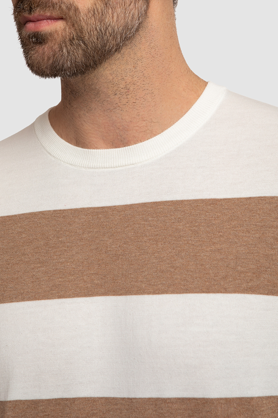 Одна из главных черт джемпера в полоску – его способность быть актуальным в любое время года. Легкий вариант из натурального длинноволокнистого хлопка Пима - уникальная модель для создания стильного повседневного образа. Благодаря сверхдлинному волокну и преимущественно ручной сборке, материал ценится за исключительную мягкость и нежность. Даже после многочисленных стирок материал остается мягким, сохраняет форму и яркость цвета, что соответствует самым высоким стандартам качества. Модель с круглым воротом и короткими рукавами удобно садится по фигуре и не вытягивается со временем. Наши стилисты рекомендуют носить джемпер KANZLER с джинсами и прямыми брюками, комбинируя с ветровкой и курткой-рубашкой. Благородная бежево-коричневая гамма изделия прекрасно сочетается с природными оттенками: хаки, бежевый, темно-серый. Параметры модели: рост 189, 102-80-99 Размер на модели: М