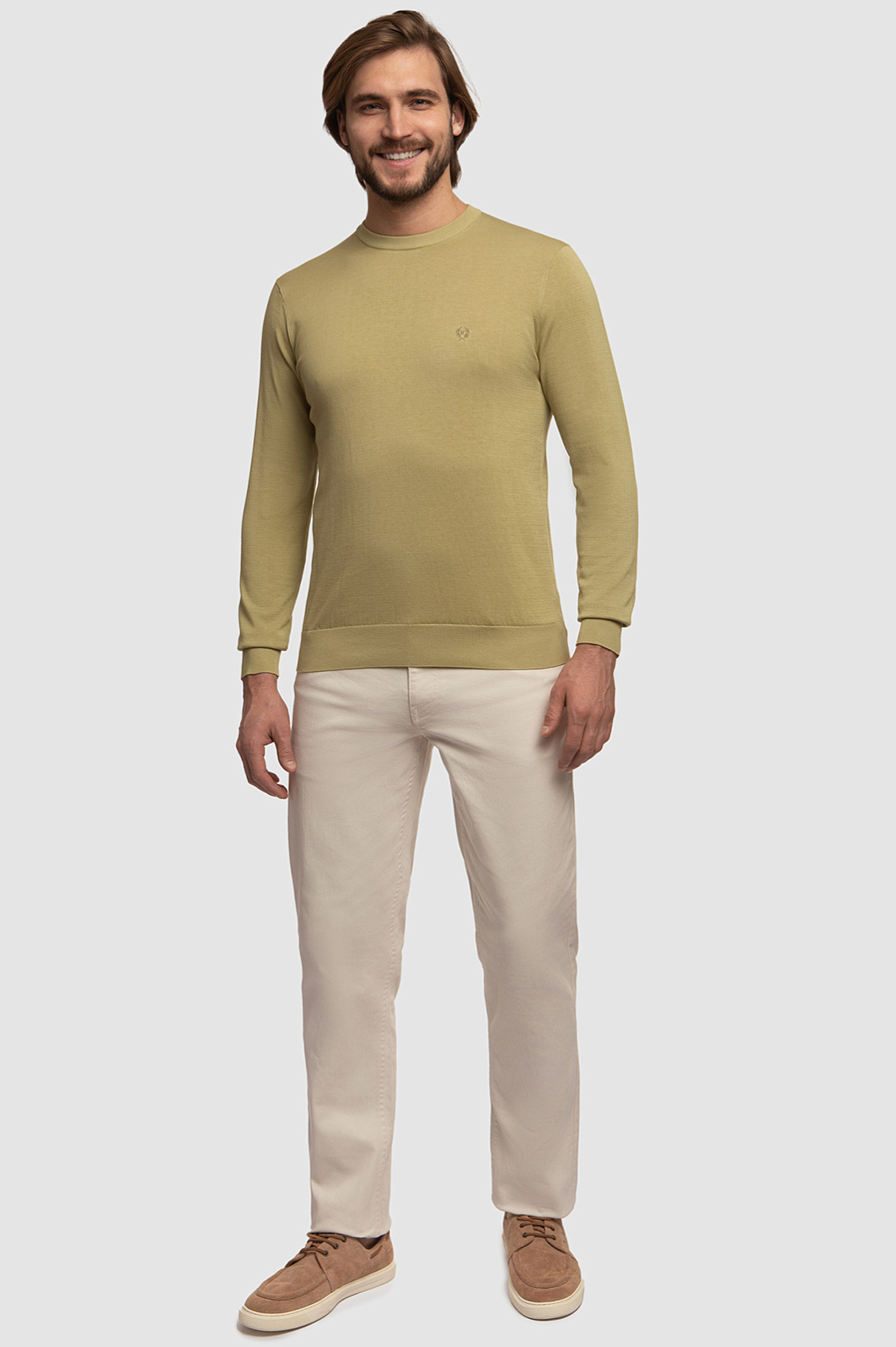 Оливковый оттенок имеет все шансы стать цветом текущего сезона. Этот насыщенный, благородный цвет заслуживает особого внимания, так как может стать как стильной акцентной деталью образа с вещами в базовой палитре, так и подчеркнуть красоту других оттенков. Для изготовления лаконичной однотонной модели с вышитым на груди логотипом выбрали тонкий смесовый материал на основе мягкого хлопка и нежного, охлаждающего льна - премиальный материал исключительно приятно ощущается на коже. Чтобы сделать ткань прочнее и придать ей деликатный матовый блеск, в пряжу добавили гладкие шелковые волокна. Джемпер KANZLER с круглым воротом и длинными рукавами – комфортный вариант для повседневных образов. Наши стилисты советуют сочетать модель со светлыми джинсами и бежевыми кедами. Параметры модели: рост 187, 100-81-97 Размер на модели: M