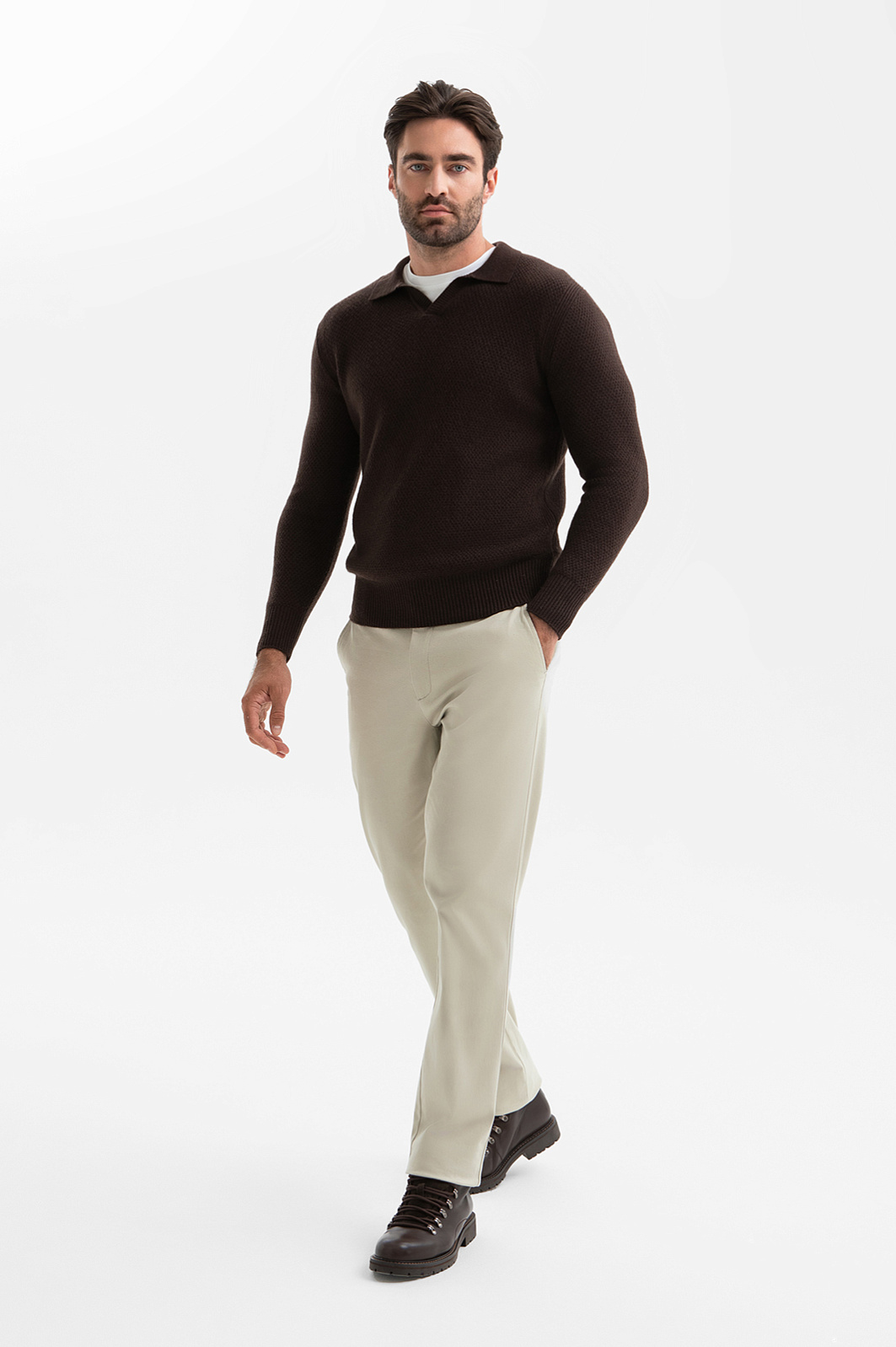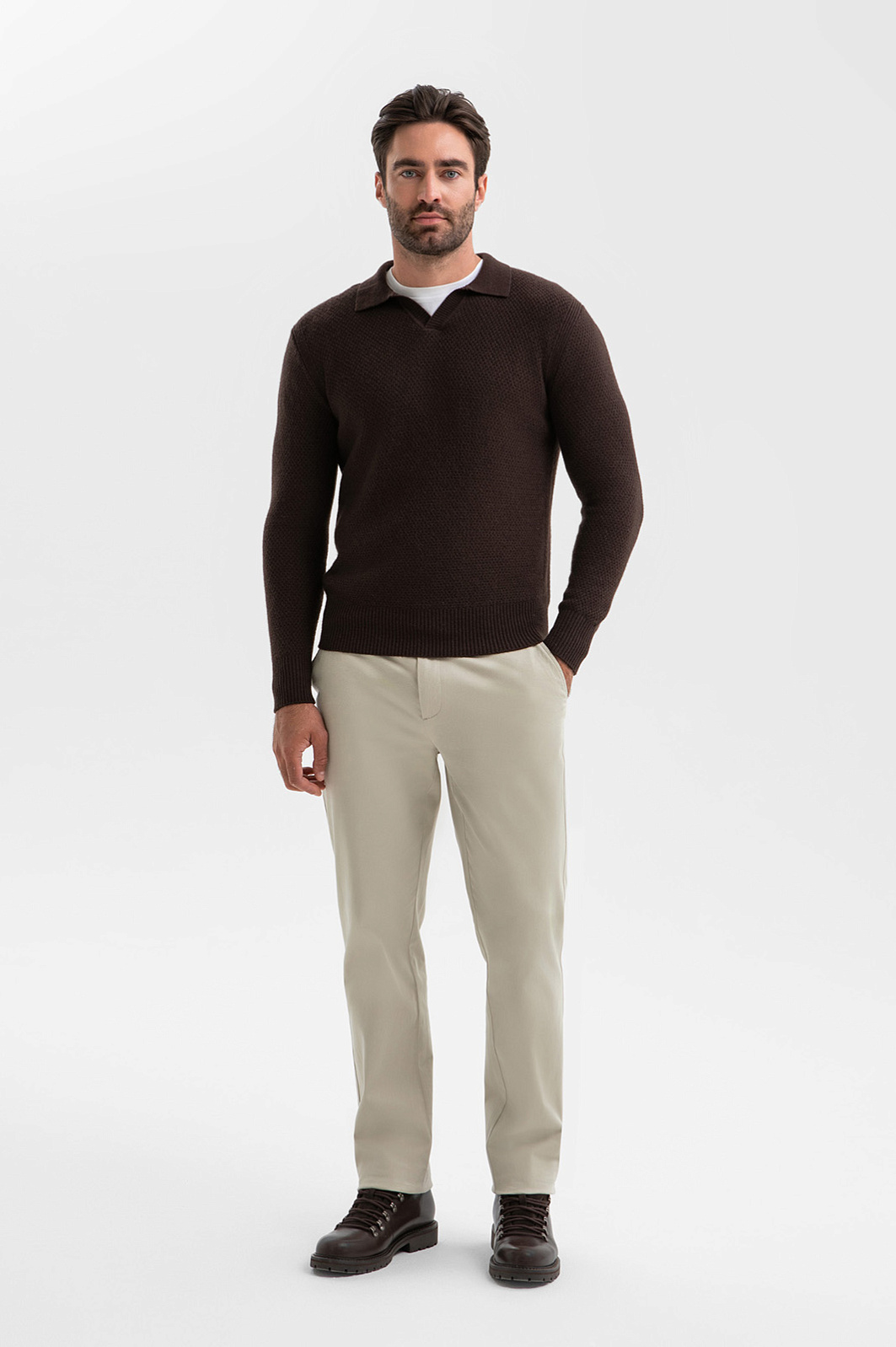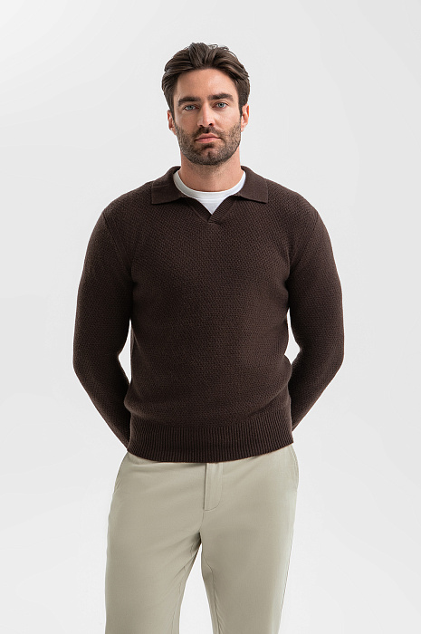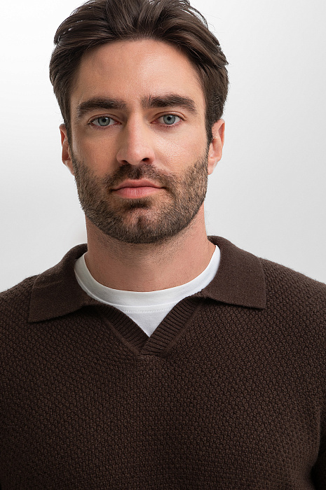 Джемпер поло из шерсти и кашемира, цвет коричневый, цена 64 990 тенге, код 269969 - купить в Астане в интернет-магазине KANZLER