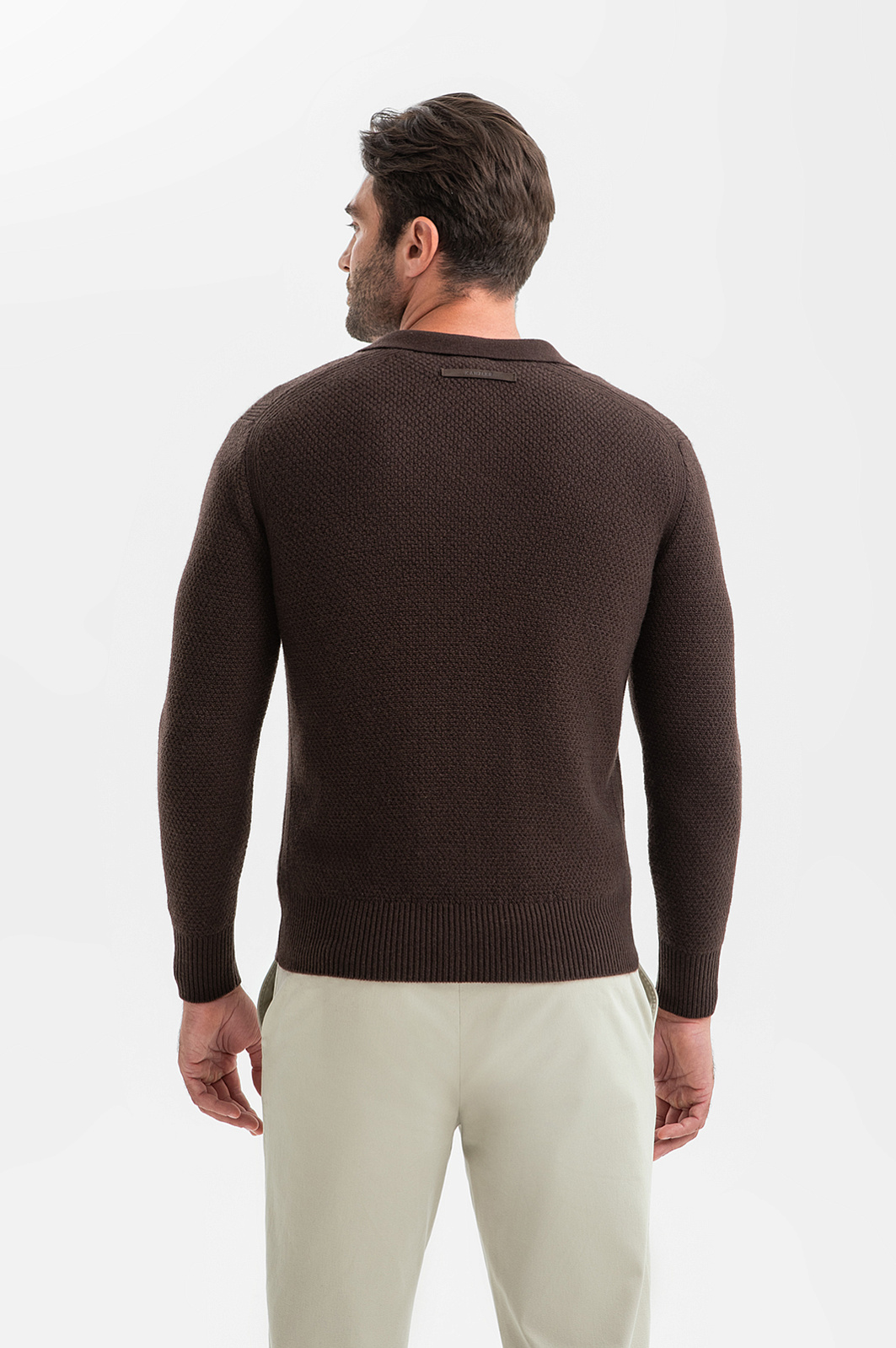 Джемпер поло KANZLER в оттенке горького шоколада – воплощение вневременной элегантности. Главное преимущество модели – натуральный материал премиального качества. Дуэт из отборной шерсти (90%) и кашемира (10%) обеспечивает терморегуляцию, не перегревая тело. Тактильно приятный мягкий материал устойчив к деформации и выцветанию. Фактурная вязка придает образу глубину и подчеркивает красоту оттенка. Канонический крой поло «работает» с любым стилем и поводом – от офиса до загородного отдыха. Параметры модели: рост 192, 108-83-102 Размер на модели: M