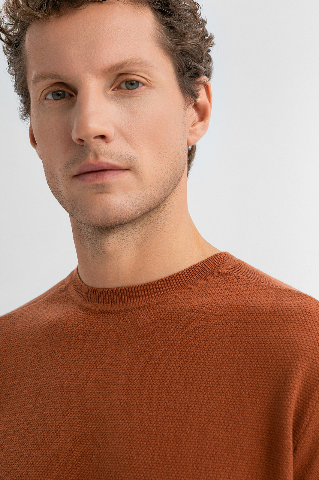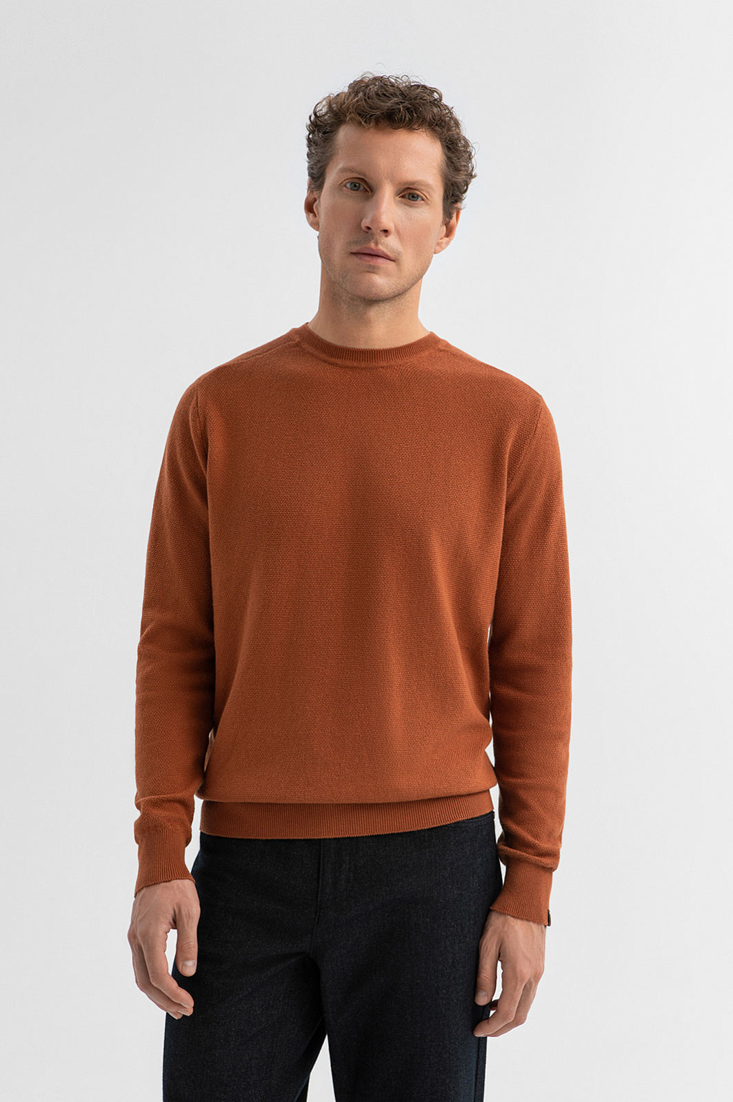 Джемпер KANZLER охристо-коричневого оттенка из хлопка с кашемиром — тёплая и сдержанно выразительная вещь в повседневном гардеробе. Глубокий природный оттенок гармонично сочетается с джинсами и неформальными брюками. Широкие трикотажные резинки на манжетах и по низу аккуратно фиксируют края. Слегка фактурный трикотаж из легкого гипоаллергенного хлопка (95%) с добавлением мягкого нежного кашемира (5%) дарит комфорт, поддерживает циркуляцию воздуха и сохраняет естественное тепло тела. Параметры модели: рост 188, 97-82-92 Размер на модели: M