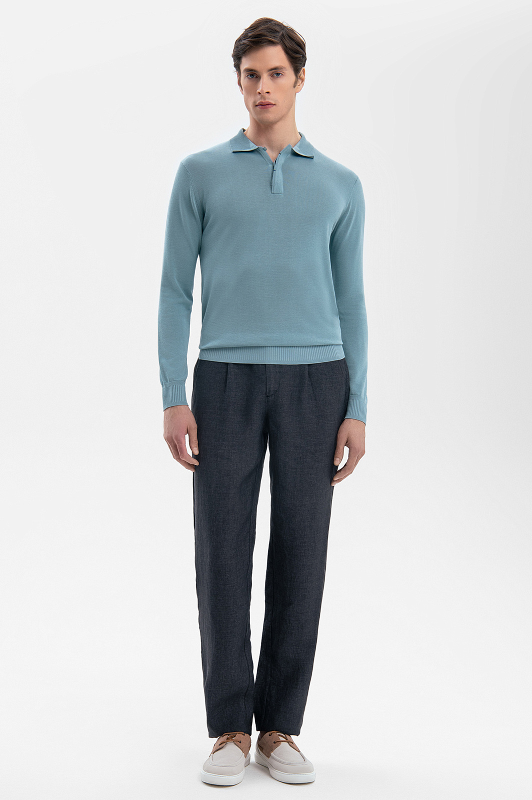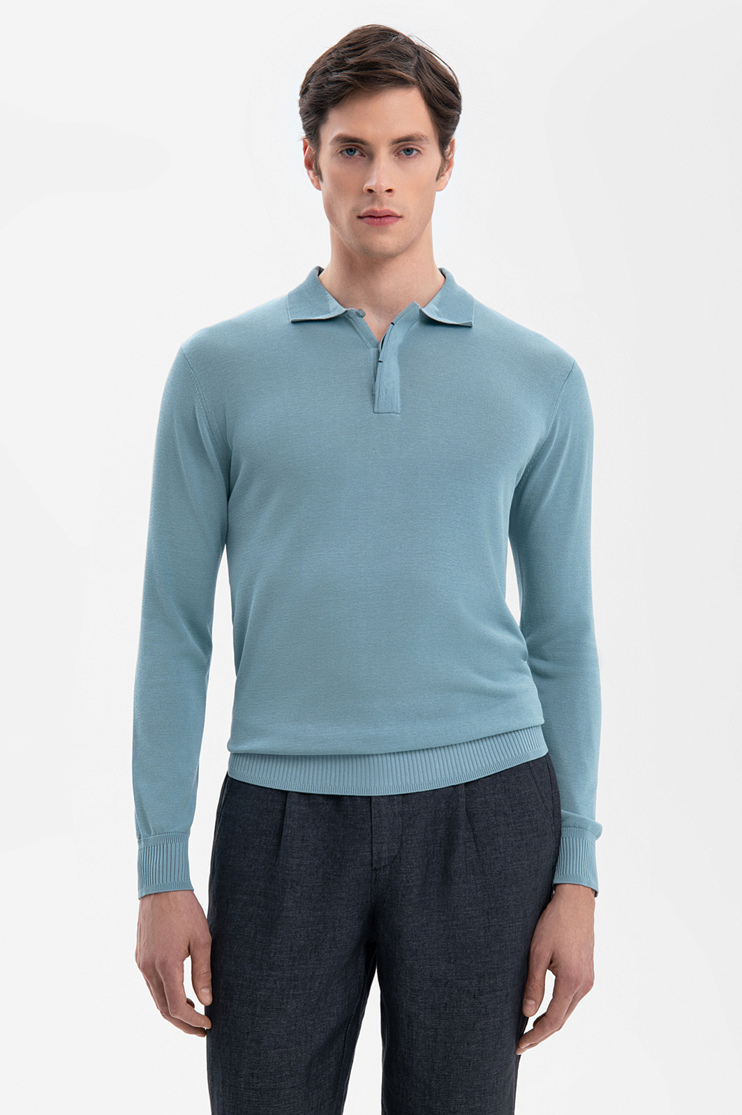 Поло KANZLER в небесно-голубом оттенке из лимитированной коллекции - синоним вневременной роскоши. Премиальный материал из 100% шелка – гипоаллергенный, дышащий, с естественной терморегуляцией – согревает в прохладу и охлаждает в зной. Гладкая фактура материала с благородным сиянием обеспечивает нежное соприкосновение с кожей, не вызывая раздражений. Классический отложной воротник с небольшими пуговицами, скрытыми планкой, и полуприлегающий силуэт создают аккуратную посадку по фигуре. Сочетайте поло с темно-серым льняным костюмом для делового образа или дополните светлыми льняными брюками и лоферами для вечерней прогулки. Параметры модели: рост 189, 91-78-95 Размер на модели: М