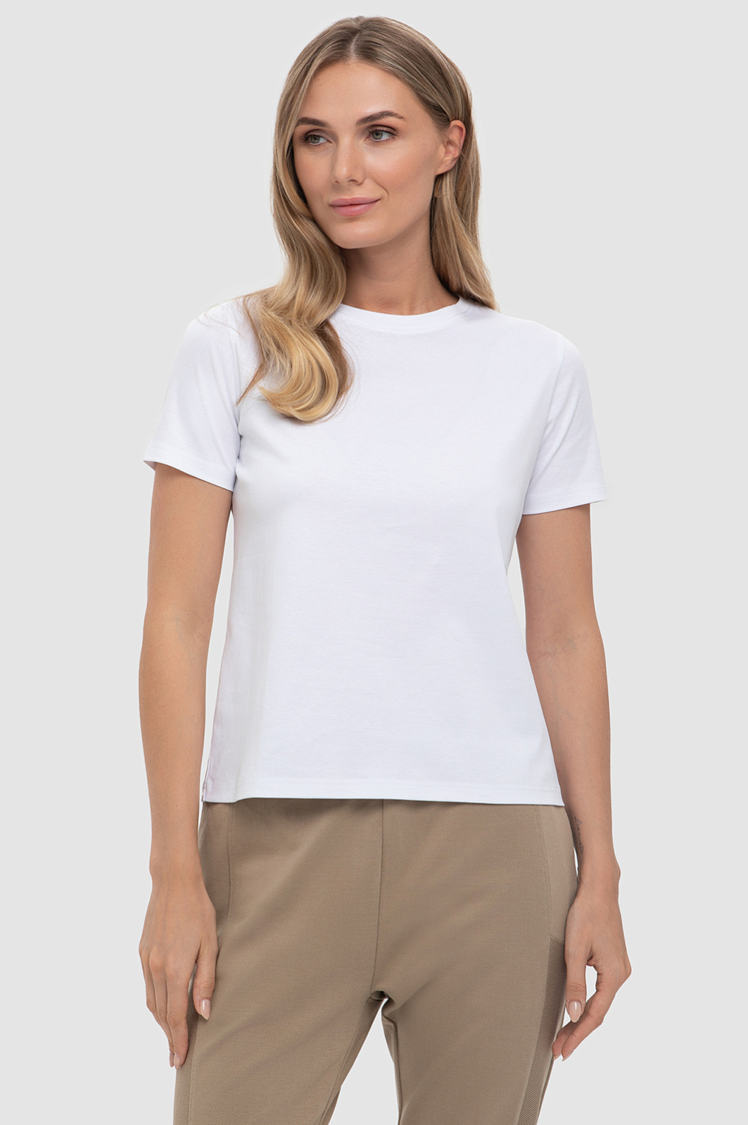 Белая футболка KANZLER из 100-процентного хлопка, украшенная деликатным круглым фирменным шильдиком сзади, — базовая вещь для аутфитов в повседневном и спортивном стилях, а также легких минималистичных современных образов. Полуприлегающий крой добавляет женственности, подчеркивая достоинства фигуры. Мягкий тянущийся трикотаж не ограничивает свободу действий. Натуральный хлопок заботится о комфорте тела, обеспечивая циркуляцию воздуха и отводя влагу. Качественный гладкий трикотаж устойчив к износу и неприхотлив в уходе. Параметры модели: рост 180, 87-61-91 Размер на модели: S