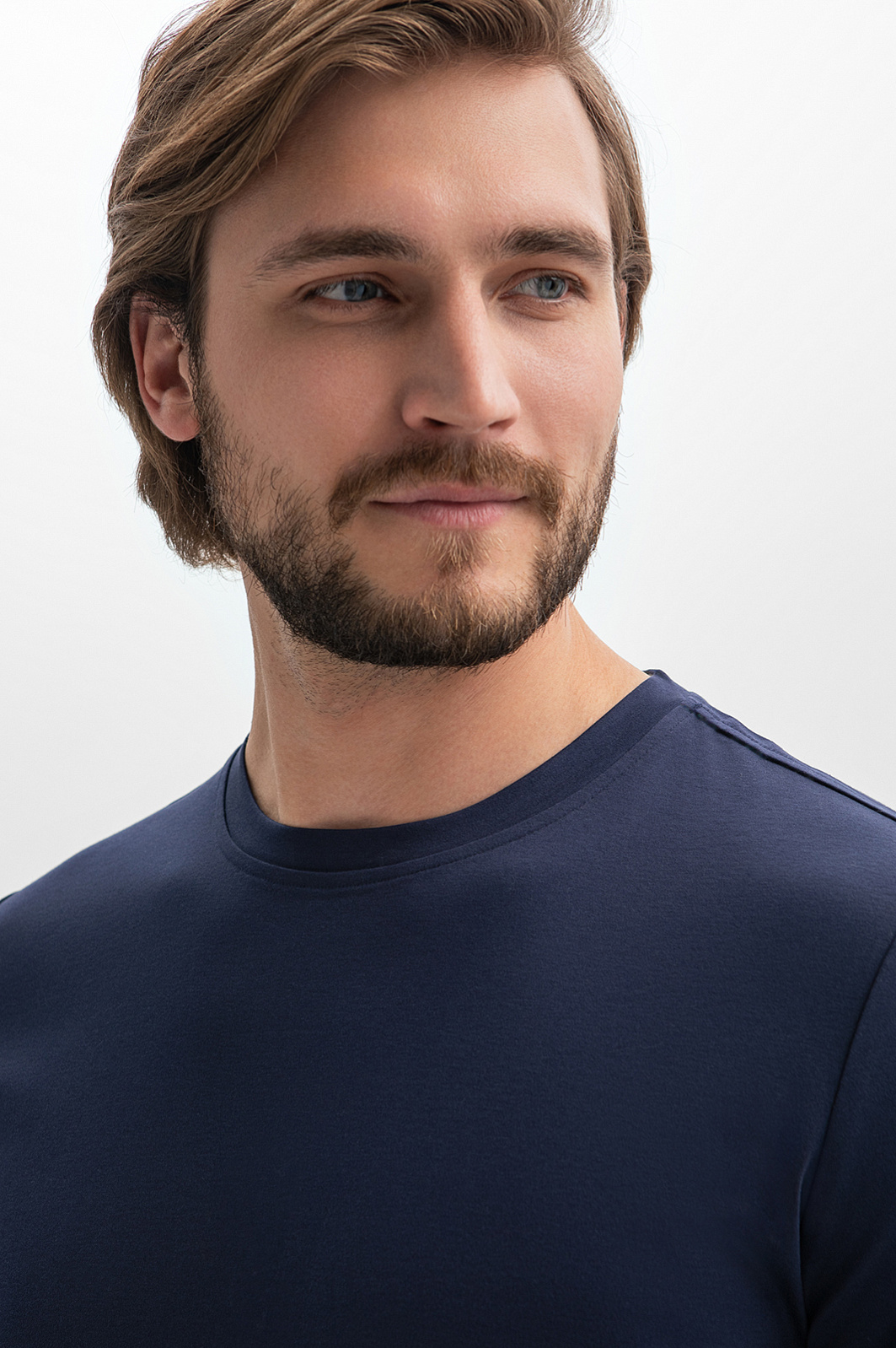 Полуприлегающая футболка в благородном синем оттенке  – комфортная базовая модель для функционального гардероба. 100% мерсеризованный хлопок отличается особой прочностью и способностью сохранять первоначальный вид даже после множества стирок. Мягкий дышащий материал обладает особой гладкостью и напоминает шелк, что выводит базовую модель на новый уровень и добавляет нотку шика. Безупречная посадка и Приталенный силуэт подчеркнут достоинства фигуры. Модель декорирована аккуратным металлическим шильдиком с логотипом бренда. Параметры модели: рост 187, 100-81-97 Размер на модели: M