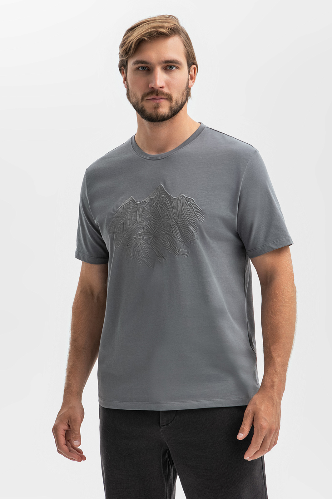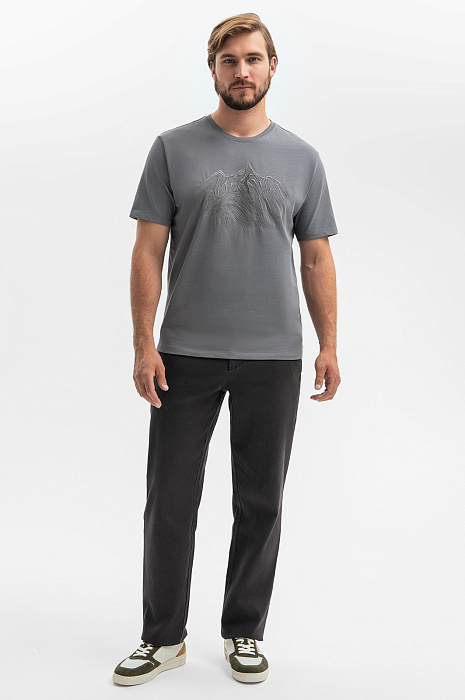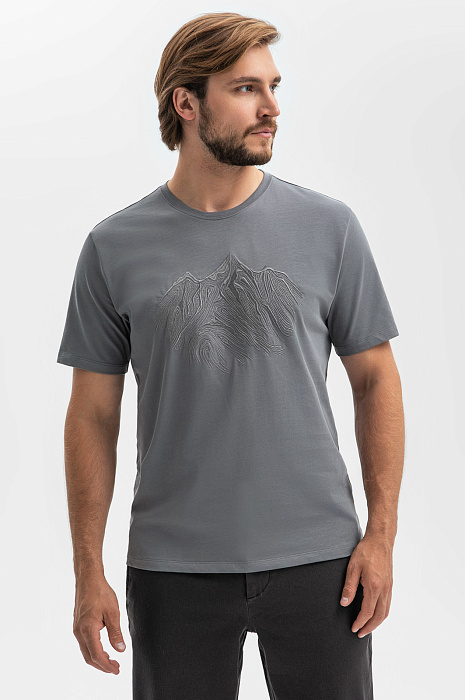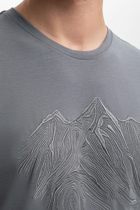Футболка из хлопка с вышивкой, цвет серый, цена 24 990 тенге, код 268201 - купить в Астане в интернет-магазине KANZLER