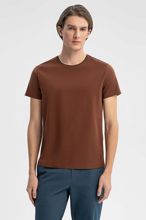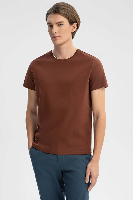 Футболка из мерсеризованного хлопка, цвет коричневый, цена 30 990 тенге, код 269164 - купить в Астане в интернет-магазине KANZLER