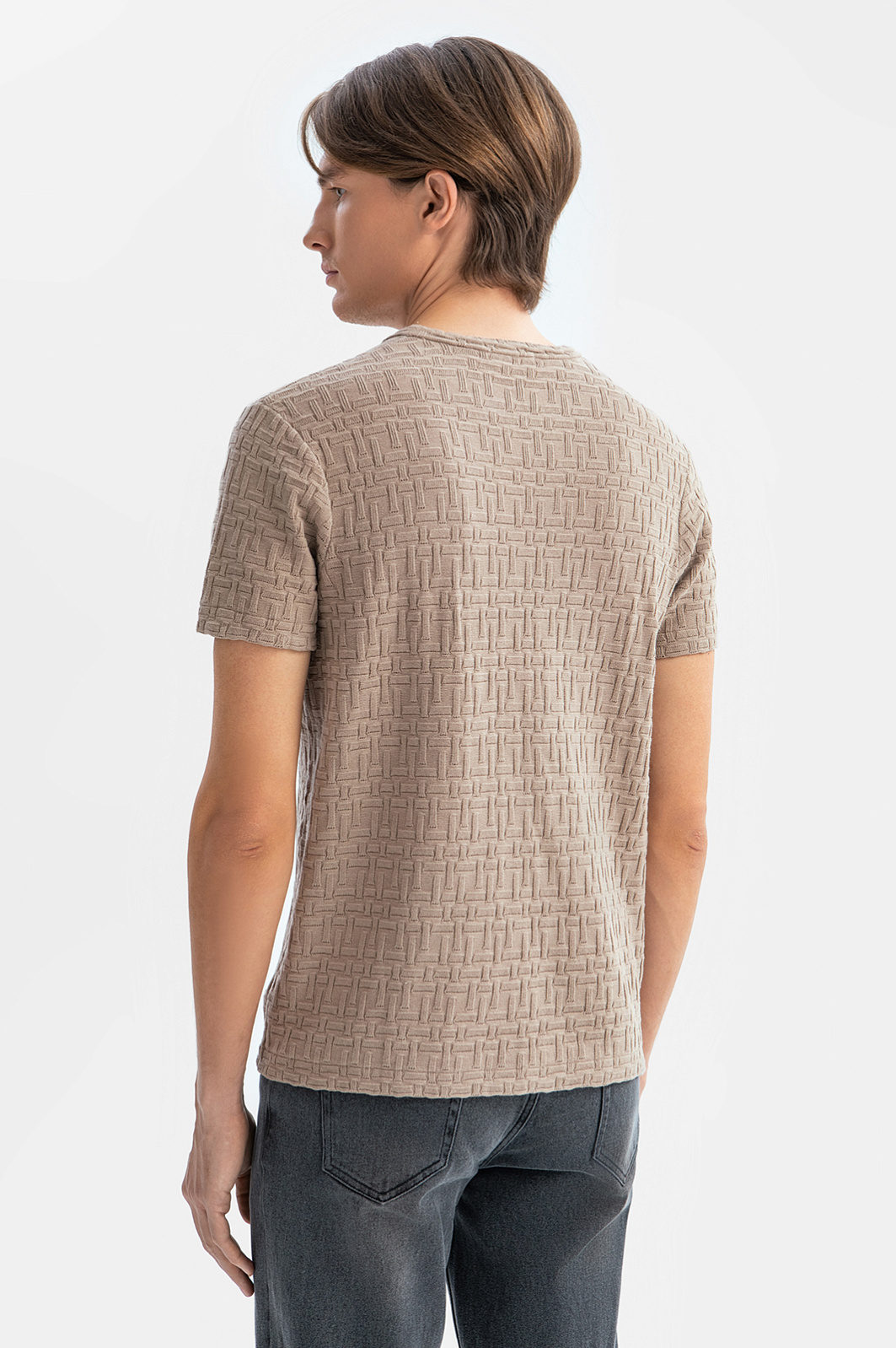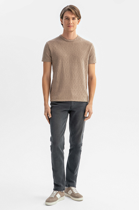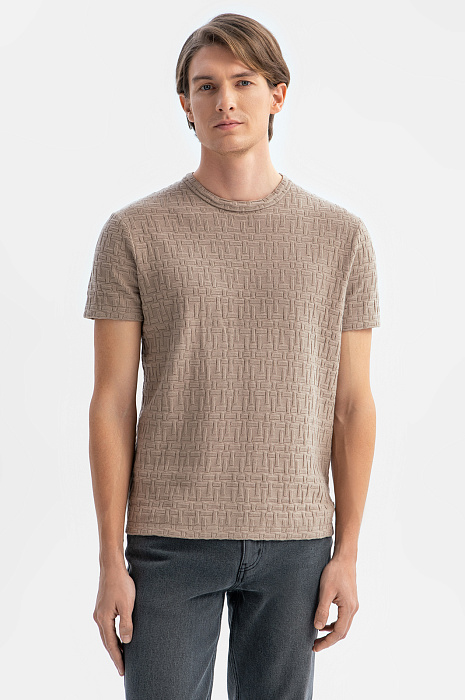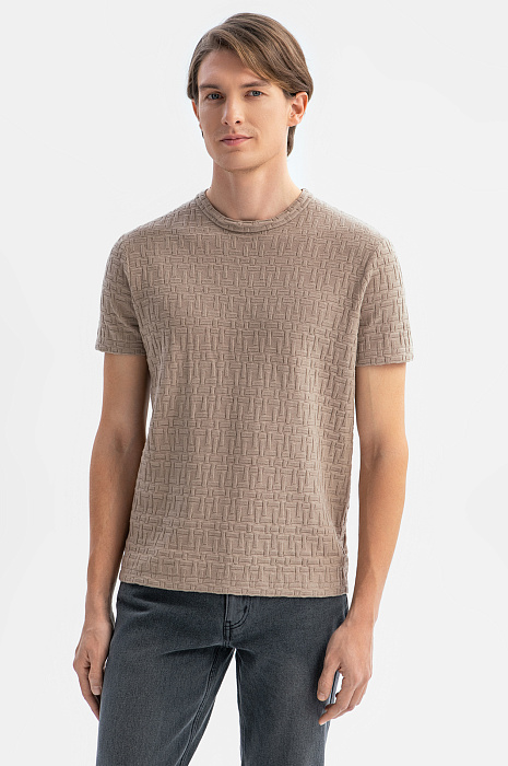 Футболка из хлопка с фактурным узором, цвет коричневый, цена 39 990 тенге, код 269170 - купить в Астане в интернет-магазине KANZLER