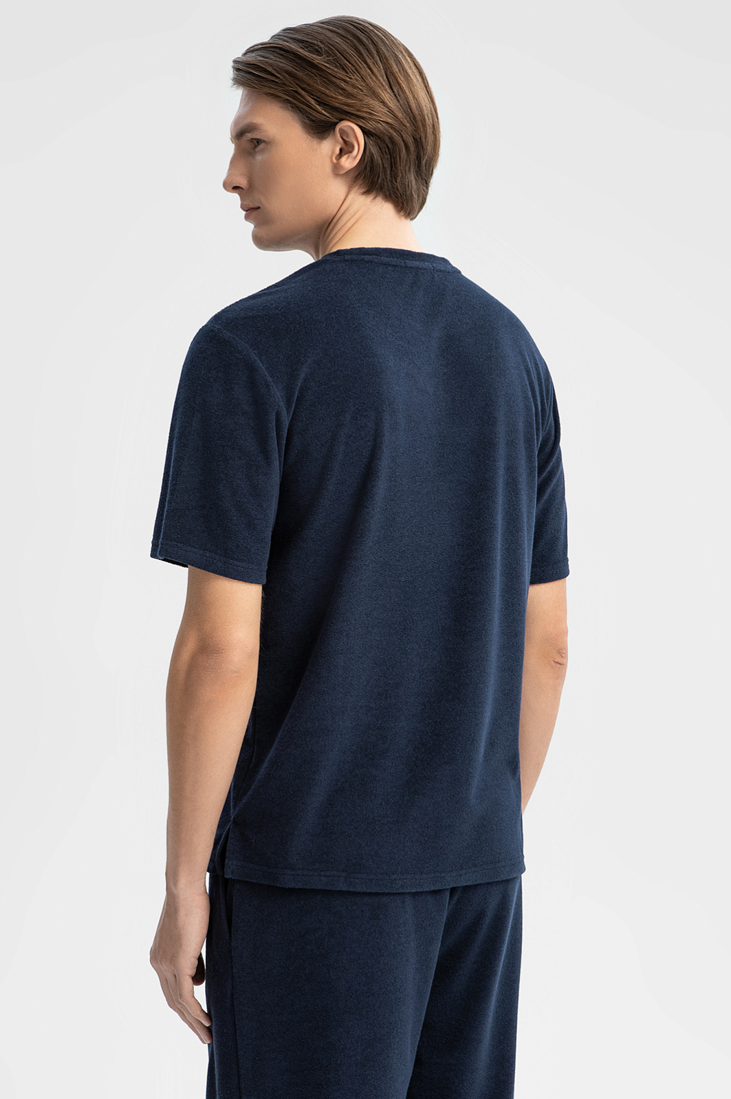 Футболка KANZLER в темно-синем оттенке воплощает в себе все, что можно ожидать от комфортной одежды для дома. В основе материала с мягкой ворсистой фактурой – гипоаллергенный хлопок, обеспечивающий воздухопроницаемость и нежное соприкосновение с кожей. Волокна полиэстера служат повышенной прочности, гладкости и сохранению формы. Свободный крой гарантирует комфорт в течение всего дня, чему бы вы его не посвятили. Модель можно дополнить брюками из домашней коллекции KANZLER.