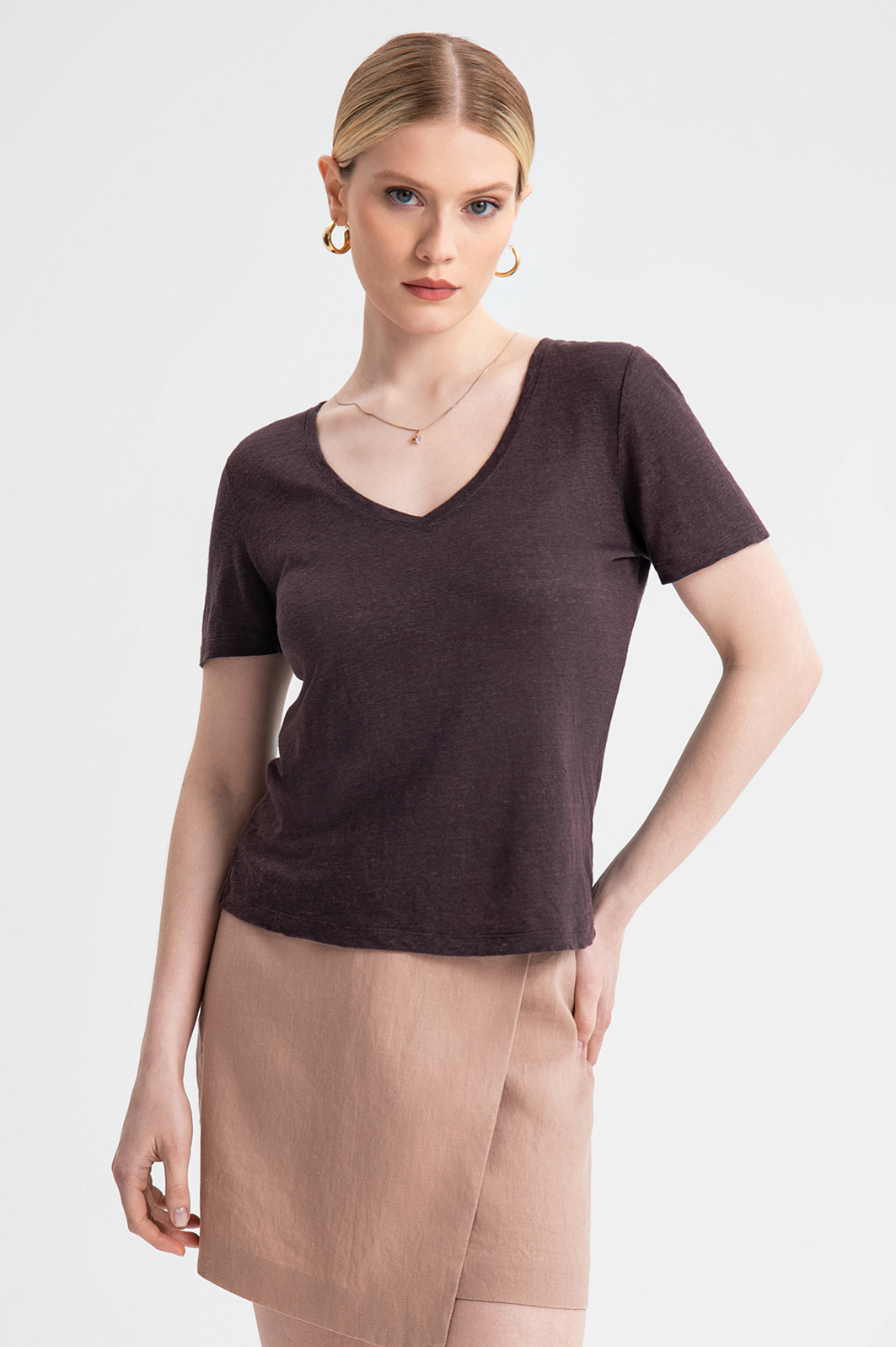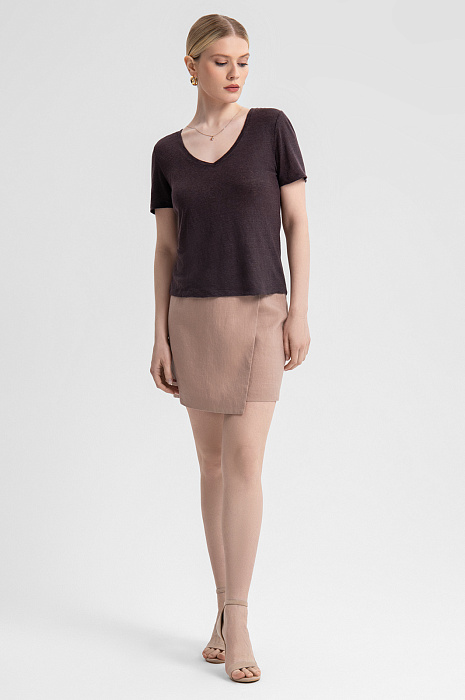 Футболка изо льна, цвет коричневый, цена , код 269649 - купить в Астане в интернет-магазине KANZLER