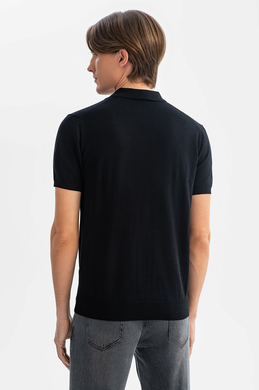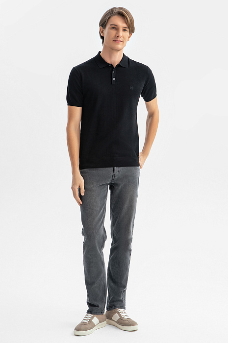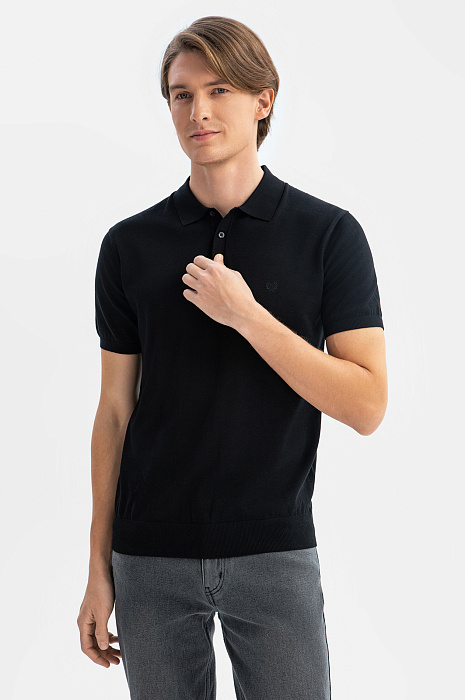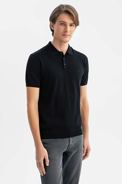 Поло из хлопка, шелка и льна, цвет черный, цена 34 990 тенге, код 269196 - купить в Астане в интернет-магазине KANZLER