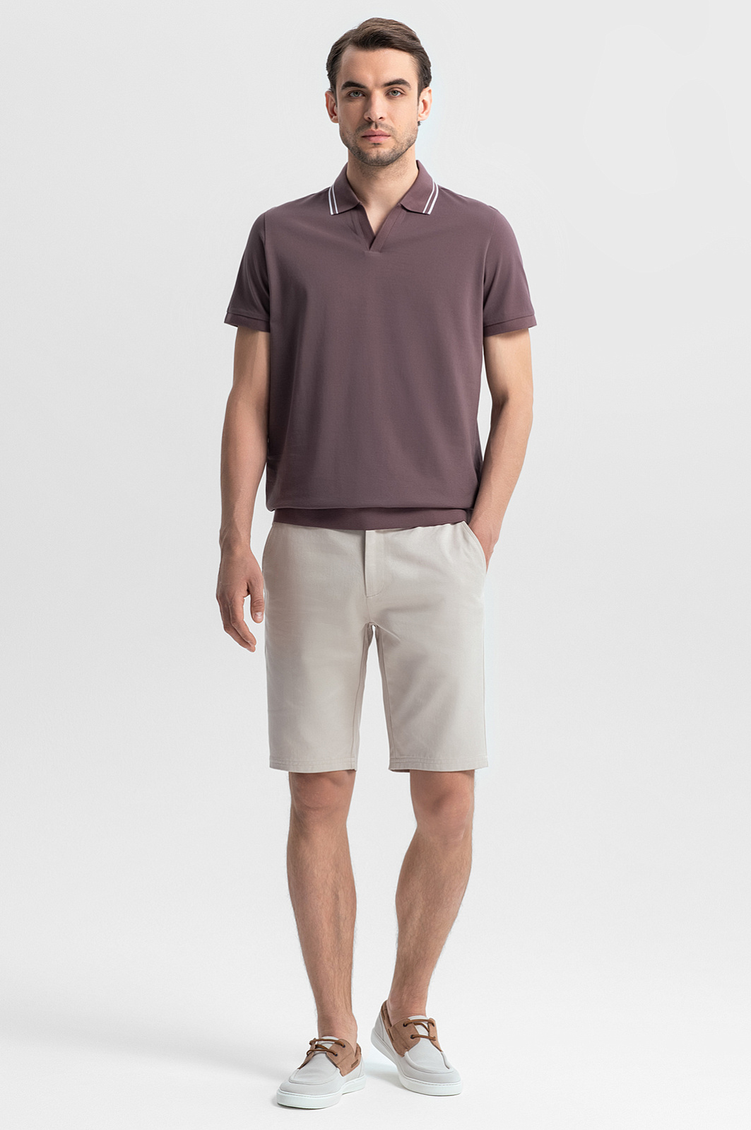 Поло KANZLER в пепельно-коричневом оттенке с фактурой пике – классика мужского гардероба в роскошном исполнении. Для его создания выбрали уникальный 100-процентный мерсеризованный хлопок. Мерсеризация – процесс обработки, который повышает прочность волокон, придает ткани шелковистый блеск и мягкость. Благодаря устойчивости к выцветанию и деформации поло будет радовать своим качеством даже после многократных стирок. Приталенный крой подчеркивает достоинства мужской фигуры, сохраняя свободу движений. Классический фасон с контрастной окантовкой на отложном воротнике легко адаптируется под разные стили – от повседневного до умный кежуал и спортивного. Параметры модели: рост 191, 101-79-101 Размер на модели: M