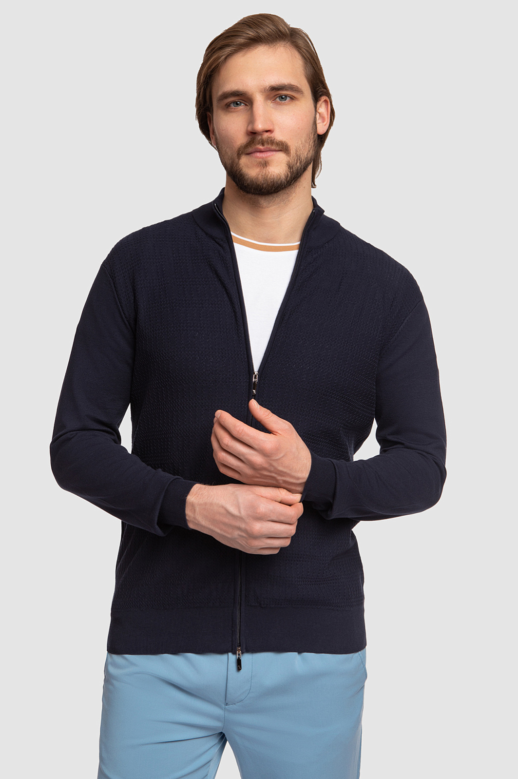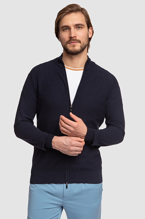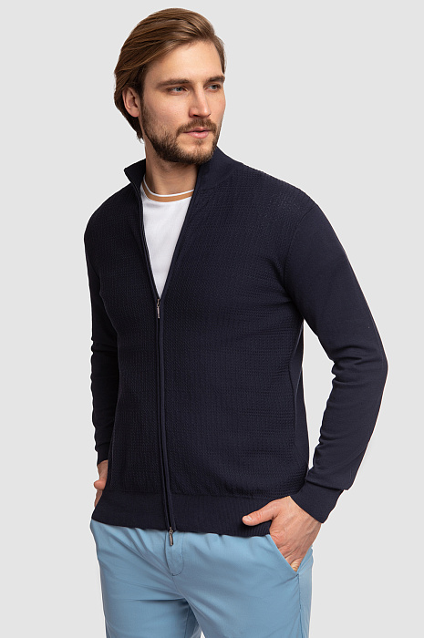 Кардиган на молнии из хлопка Пима, цвет синий, цена 54 990 тенге, код 267241 - купить в Астане в интернет-магазине KANZLER