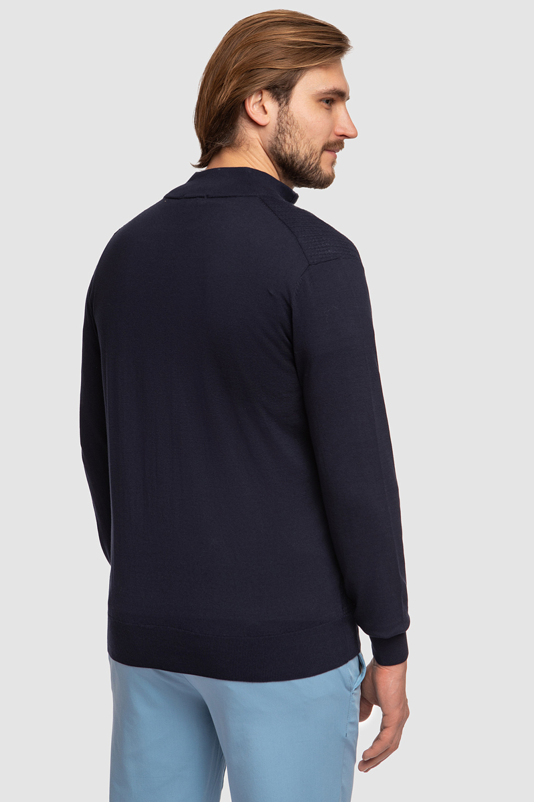В лаконичную коллекцию KANZLER вошел темно-синий кардиган на молнии с воротником-стойкой. Кардиган с трикотажными манжетами в благородном синем оттенке сделает повседневный образ максимально комфортным и уютным. Благодаря натуральному составу из 100% хлопка в нем будет тепло в прохладные дни. Чтобы изделие было еще комфортнее, дизайнеры предусмотрели трикотажную резинку для защиты от ветра. Базовая модель будет сочетаться практически с любой одеждой, а рифленый вертикальный узор на ткани гармонично дополнит образ. Повседневный аутфит поддержат белая футболка, прямые голубые джинсы и белые кеды. Кардиган комфортно садится по фигуре, не сковывая движения. Параметры модели: рост 187, 108-88-104 Размер на модели: L