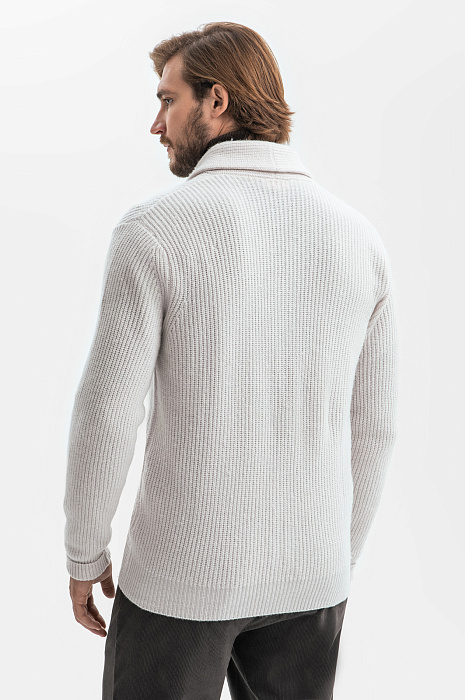 Кардиган KANZLER молочного оттенка привнесет в образ легкость и изысканность. Универсальная модель послужит отправной точкой в создании мягких уютных образов в стиле кежуал. Крупная фактурная вязка в рубчик добавляет модели теплоты и брутальности. А традиционные детали: мягкий шалевый воротник, роговые пуговицы — долю ретрошика. Шерстяные волокна сохраняют тепло тела, не допуская перегревания. Добавление суперпрочных нейлоновых нитей служит для прочности, поддержания формы и износоустойчивости. Параметры модели: рост 187, 100-81-97 Размер на модели: M