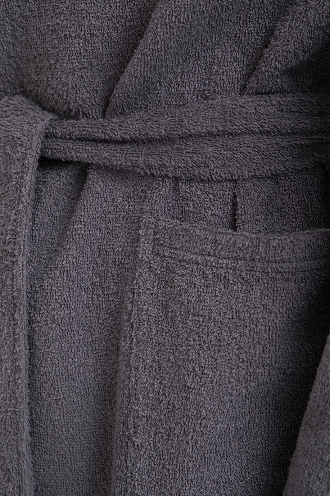 Махровый халат KANZLER благородного серого оттенка из чистого хлопка с поясом будет приятно надеть после душа, бассейна или спа-процедур, чтобы насладиться спокойным безмятежным отдыхом. Полы отделаны широкой плотной планкой с крупным фактурным крупным логотипом, которая придает халату изящество и сходство с кимоно. Свободный крой не стесняет движений. Телефон и важные мелочи можно держать в больших вместительных карманах. Мягкая ткань из 100-процентного хлопка с петельным ворсом хорошо впитывает влагу, сохраняет тепло тела и не мнется.