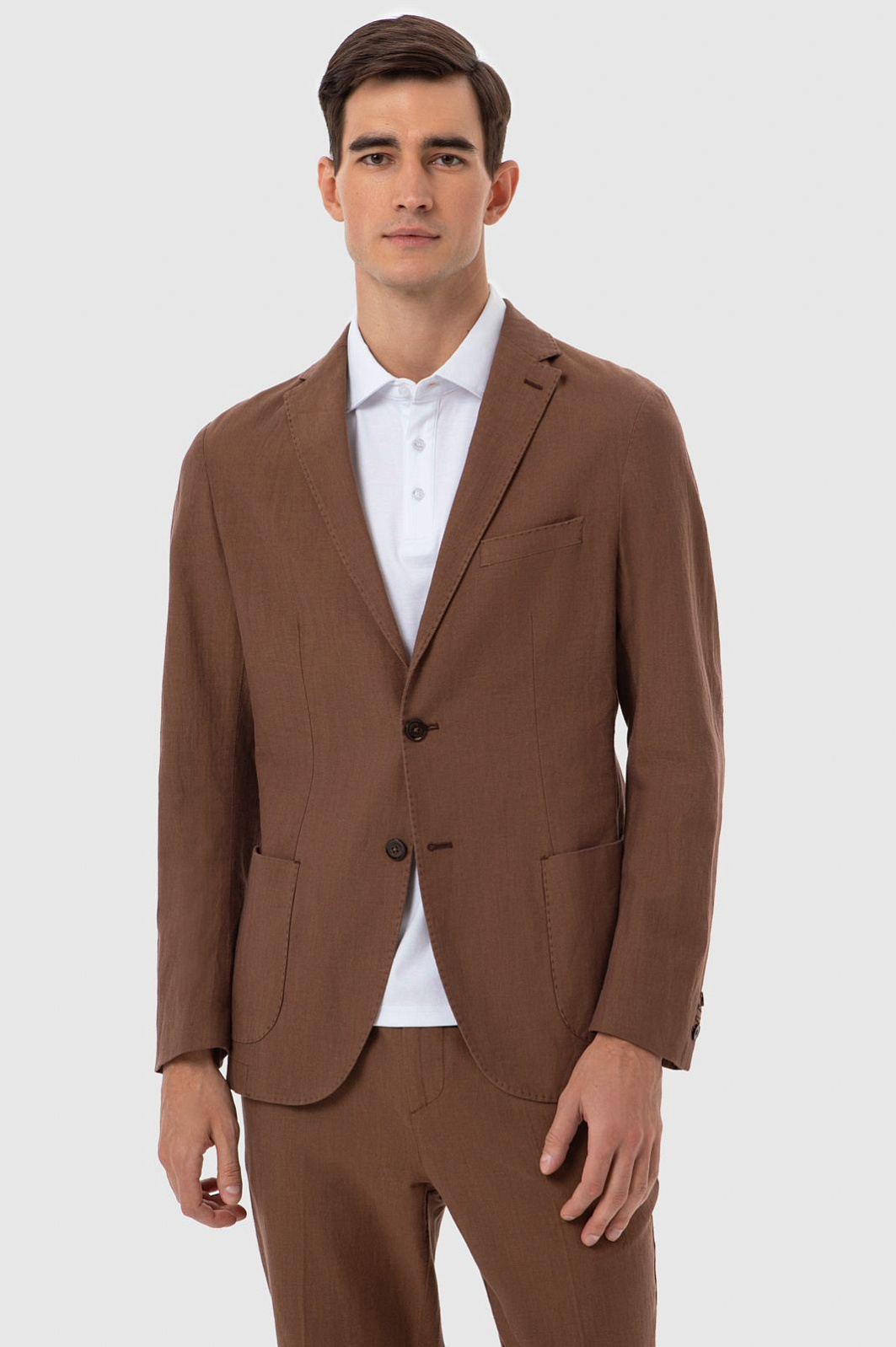 Костюм из хлопка, льна и тенсела, цвет коричневый, цена 264 980 тенге, код - купить в Астане в интернет-магазине KANZLER