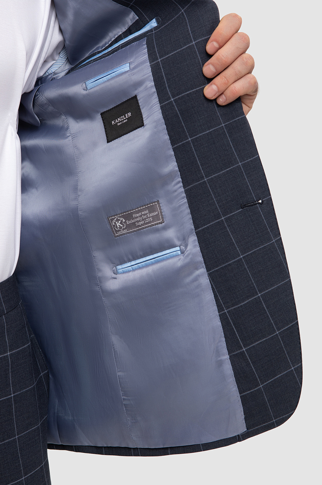 Элегантный костюм KANZLER серого оттенка в тонкую широкую клетку — образец тихой роскоши. Дорогая премиальная ткань создана из тонкой чистой шерсти мериноса Супер 120S. Ее отличают благородный вид и уникальные свойства — способность сохранять комфортную температуру, гигроскопичность и устойчивость к сминанию. Пиджак традиционного кроя с двумя шлицами сзади имеет внешние и внутренние карманы — для пластиковых карт и полезных мелочей. Подкладка выполнена из гладких и износоустойчивых современных материалов. Костюм имеет все шансы стать вашим фаворитом. Он будет великолепно смотреться в офисе и на деловых встречах "без галстука".