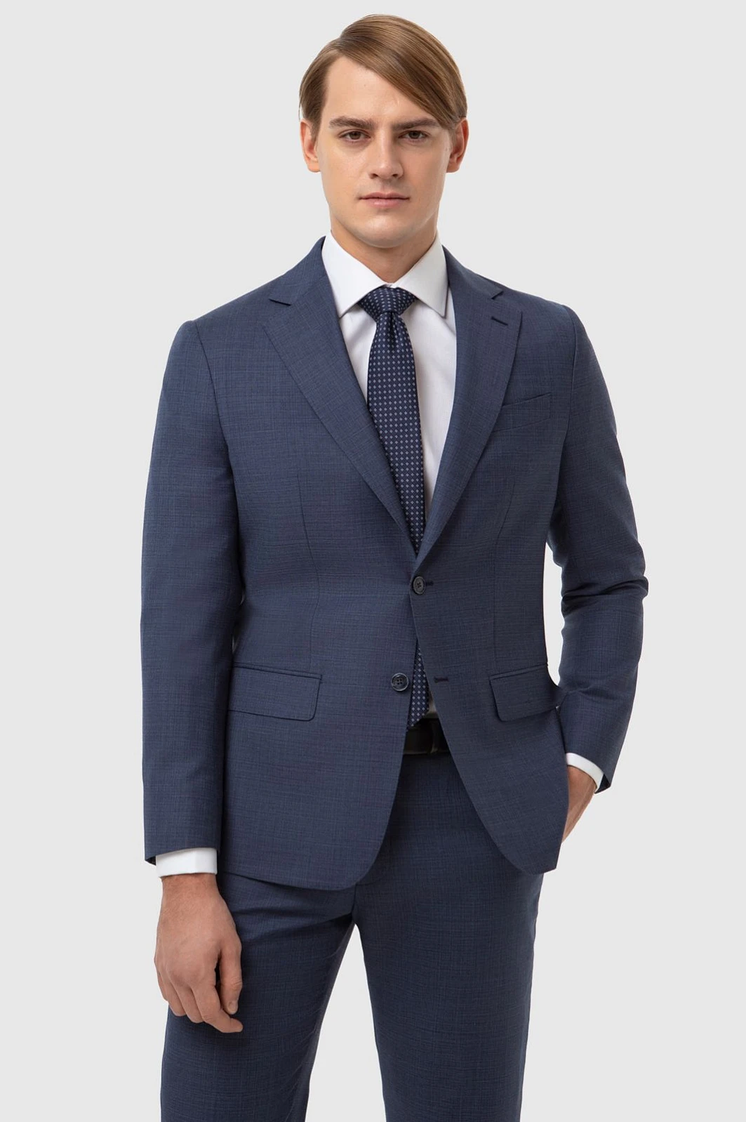 Говоря о мужском гардеробе, сложно представить что-то более элегантное и вневременное, чем классический костюм KANZLER серо-синего оттенка из тонкой шерсти мериноса Супер 120S. Он идеально подходит для офиса и деловых поездок. Двойка хорошо сидит на любом типе фигуры. Классический пиджак с двумя шлицами обеспечивает правильное облегание — между тканью и торсом остается небольшой зазор. Брюки удлиняют силуэт и добавляют роста. Дорогая ткань из тонкой натуральной шерсти устойчива к сминанию и загрязнениям, благодаря чему костюм можно носить в любую погоду, круглый год. Благородный материал сохраняет комфортную температуру, защищая от жары и холода.