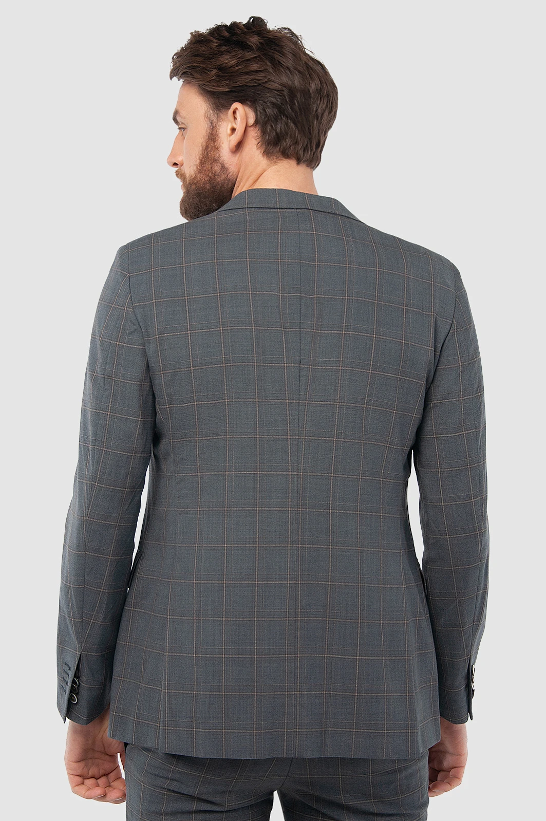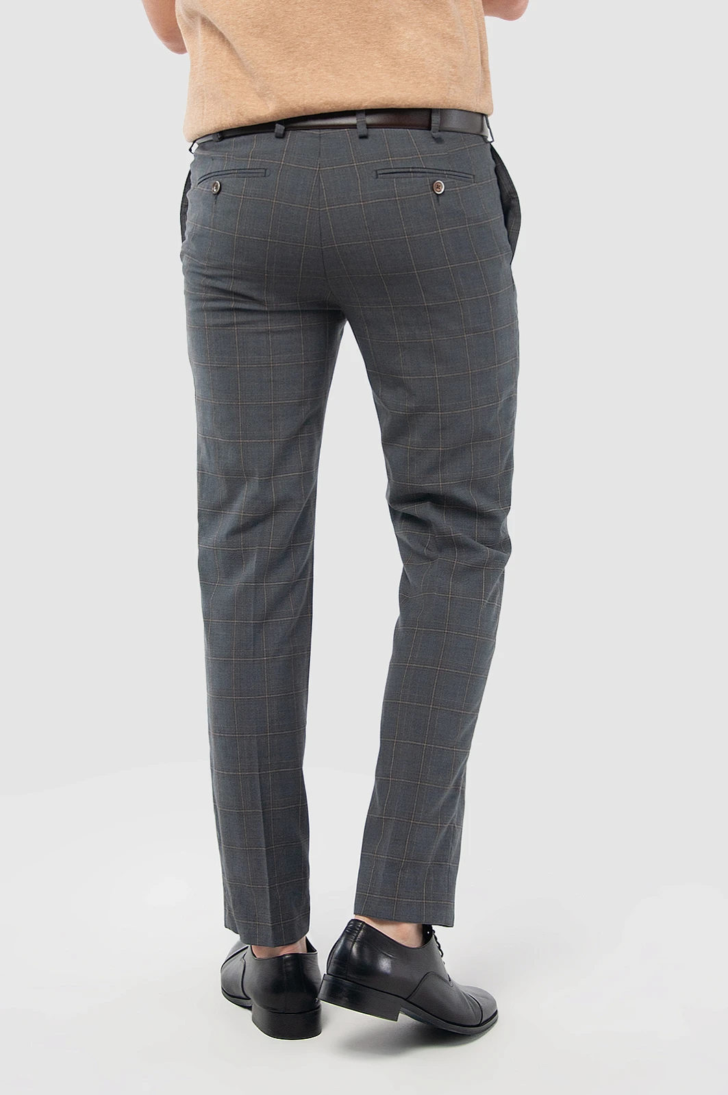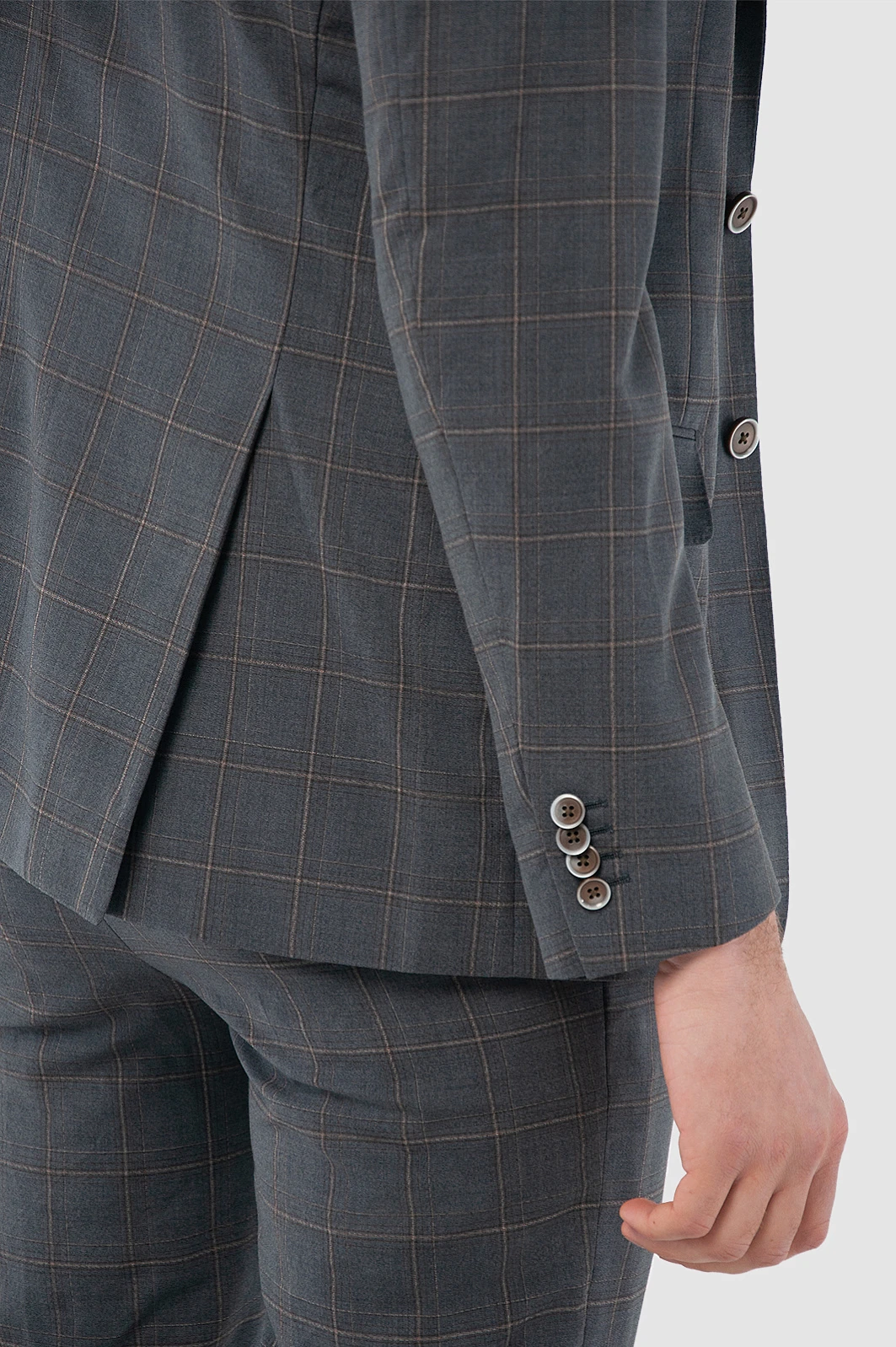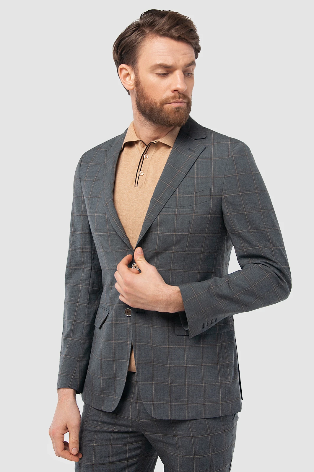 Классический приталенный костюм — знаковый элемент коллекции KANZLER. Элегантный и изысканный стиль в паре с практичной технологией обработки ткани делают этот костюм истинным достоянием коллекции и самым желанным гостем в гардеробе делового мужчины. Модель мастерски скроена нашими портными из высококачественной премиальной шерсти мериноса с несравненным вниманием к деталям. Уникальная технология позволяет сохранить форму и внешний вид костюма после машинной стирки в домашних условиях, а также экономит ваше время на походы в химчистку. Классический серый костюм украшает контрастный узор в тонкую клетку, который придает ткани дополнительную глубину и фактуру. Дополните образ рубашкой из белого хлопка или поло пастельного оттенка.