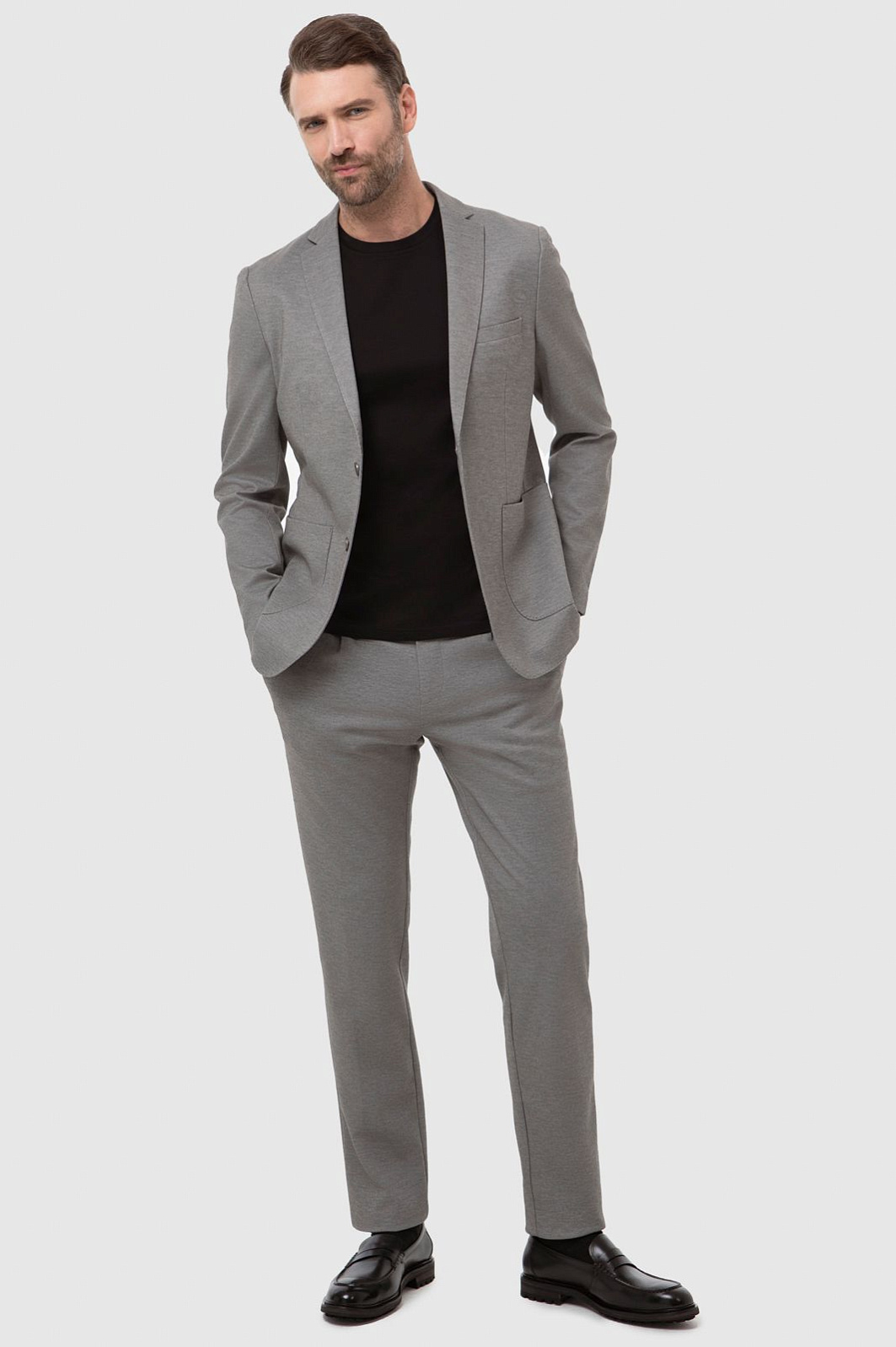 Современный офисный стиль - это сочетание модных тенденций и комфортного кроя, объединение элементов классического и современного стиля, - все это открывает новые варианты для стилизации. Костюм KANZLER из фактурного прочного текстиля сочетает в себе лаконичность классики и комфорт расслабленных фасонов. Материал, из которого выполнен костюм, поддерживает оптимальную температуру, сохраняя ощущение комфорта, не мнется и долго сохраняет безупречный вид. В комплекте - приталенный однобортный пиджак с узкими лацканами, накладными карманами и облегченной подкладкой, и прямые брюки комфортного кроя. Костюм прекрасно сочетается как с белой рубашкой для делового офисного образа, так и с футболкой или джемпером - для образа выходного дня. Трикотажный костюм расслабленного кроя в оттенке графит сшили из технологичного смесового материала на основе полиэстера, шелковистого района и эластичного спандекса. Пиджак можно носить отдельно в образах с брюками или черными джинсами.