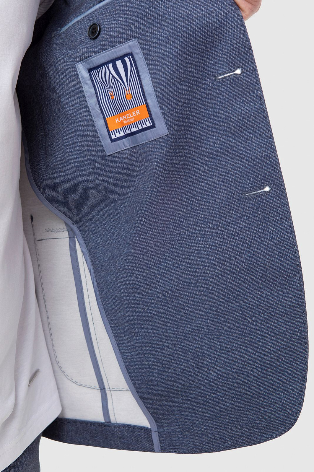 Современный взгляд на традиционный офисный образ нашел свое отражение в новой коллекции классических костюмов KANZLER. Это не просто строгий и лаконичный костюм, но и комфортное изделие с продуманным дизайном, которое украсит любого мужчину, придав ему стильный и современный облик. Трикотажный костюм с однобортным пиджаком и комфортными брюками с регулируемой посадкой на кулиске. Градус официальности снижают: слегка расслабленный крой, приятный меланжевым эффект ткани, лаконичная фурнитура и накладные карманы.  Модель выполнили из технологичного сертифицированного смесового материала, в составе которого - высококачественное синтетическое волокно, шелковистый район и эластичный спандекс. Пиджак и брюки не сковывают движения, обеспечивают оптимальную температуру. Невероятный оттенок sky blue - новинка коллекции, в которой воплощаются тенденция к миксу комфорта, офисного стиля и итальянского шика.
