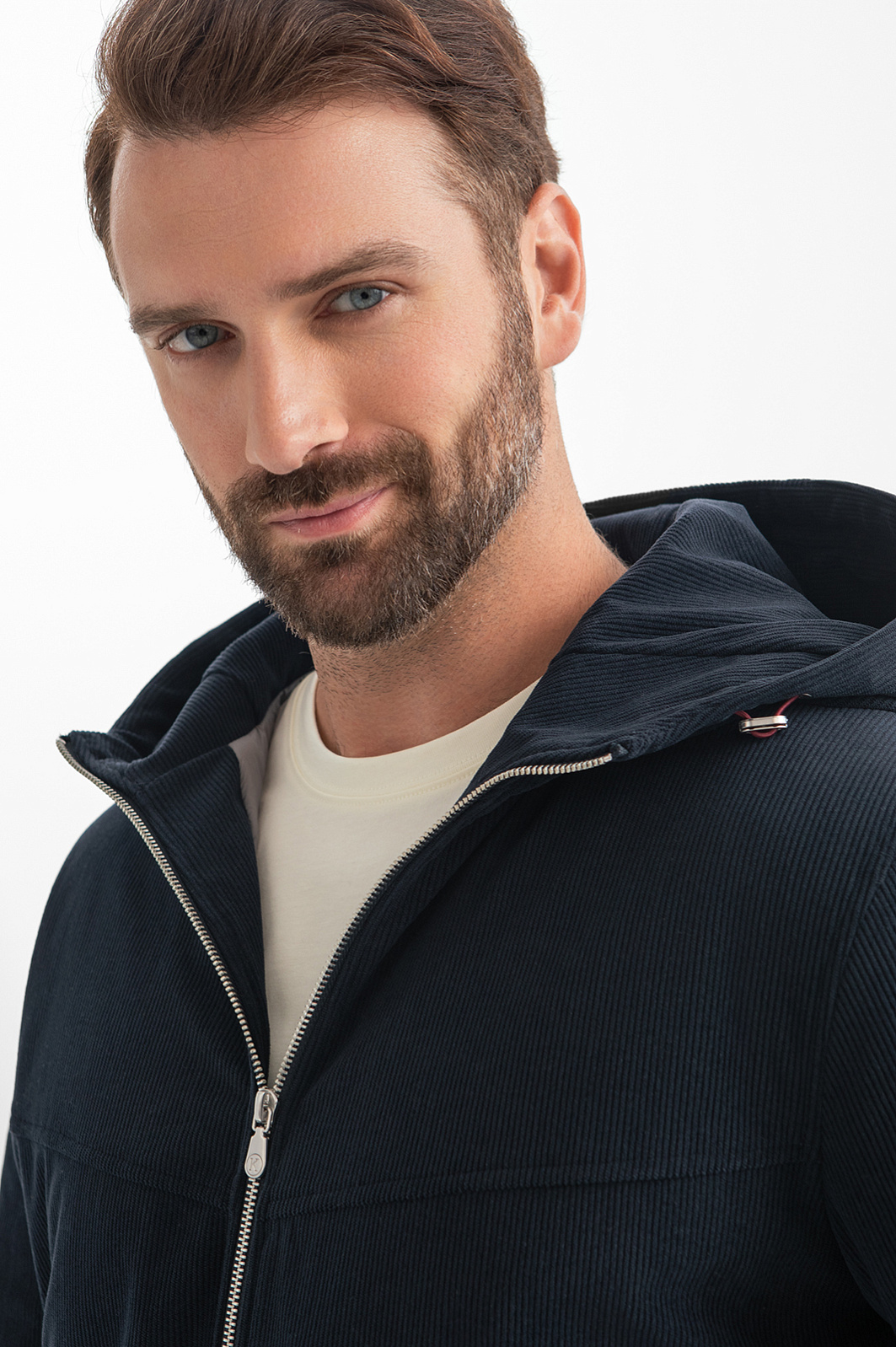 Куртка с капюшоном из вельвета, лимитированная коллекция, цвет синий, цена 149 990 тенге, код 268223 - купить в Астане в интернет-магазине KANZLER