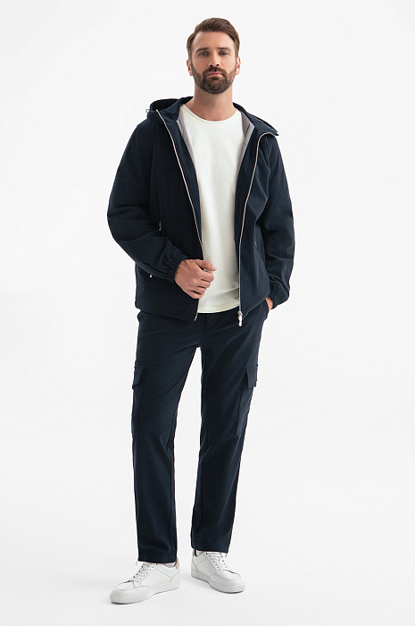 Куртка с капюшоном из лимитированной коллекции - воплощение стиля и комфорта. Модель с функциональными карманами сшита из высококачественного хлопкового вельвета с текстурой, придающей глубину и насыщенность синего оттенка. Вельвет известен своей прочностью и способностью удерживать тепло, что делает его идеальным для прохладной погоды. Внутренняя стежка сохраняет тепло, а регулируемый капюшон обеспечивает дополнительную защиту от ветра, добавляя модели спортивный характер. Спортивная куртка застегивается на металлическую молнию, которая придает брутальность изделию. Для завершения образа сочетайте куртку с карго с накладными карманами — получится идеальный комплект для активных будней и прогулок. Параметры модели: рост 189, 102-80-99 Размер на модели: 50
