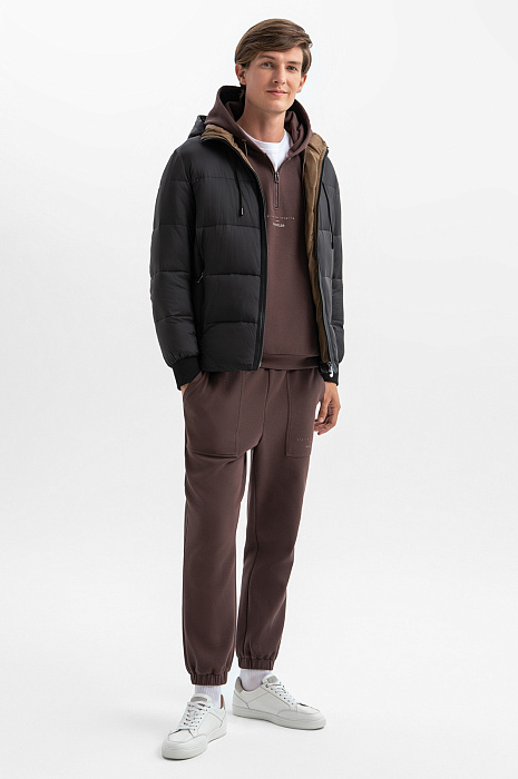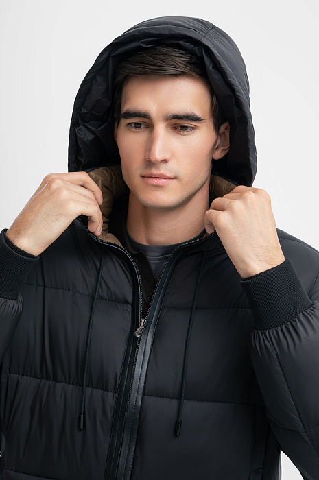Черная стеганая куртка KANZLER с капюшоном может выглядеть очень строго и функционально, а может — роскошно, в стиле спорт шик, если всего лишь расстегнуть молнию. Это приоткроет внутреннюю часть воротника и отворотов, выполненных в приятном сливочно-кофейном оттенке. Степень прилегания капюшона регулируется шнурком-затяжкой. Водоотталкивающий материал из прочного полиамида защитит от холодного дождя, снега и ветра. Тепло тела сохраняет наполнитель из полиэстера. Эти современные материалы устойчивы к загрязнениям и практичны в уходе. Параметры модели: рост 192, 101-76-97 Размер на модели: 50