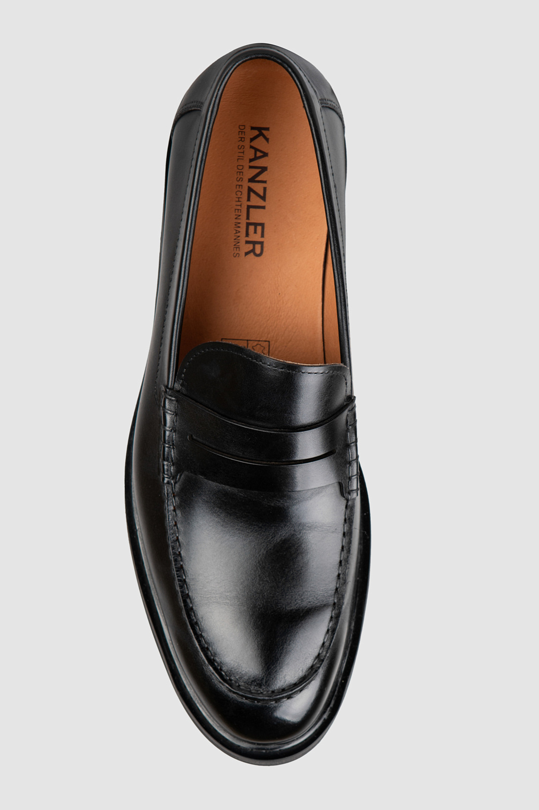 Классические черные кожаные лоферы KANZLER — достойный выбор городского денди для создания непринужденных элегантных образов. Они сочетаются с неформальными слегка зауженными брюками и джинсами. Верх лоферов выполнен из натуральной гладкой кожи превосходной выделки, которая отлично сохраняет форму и спокойно переносит капризы погоды. Внутренняя часть — стелька и подкладка — также сделаны из кожи, что гарантирует ногам комфорт в течение всего дня. Рифленая подошва из резины придает походке уверенность и устойчивость.