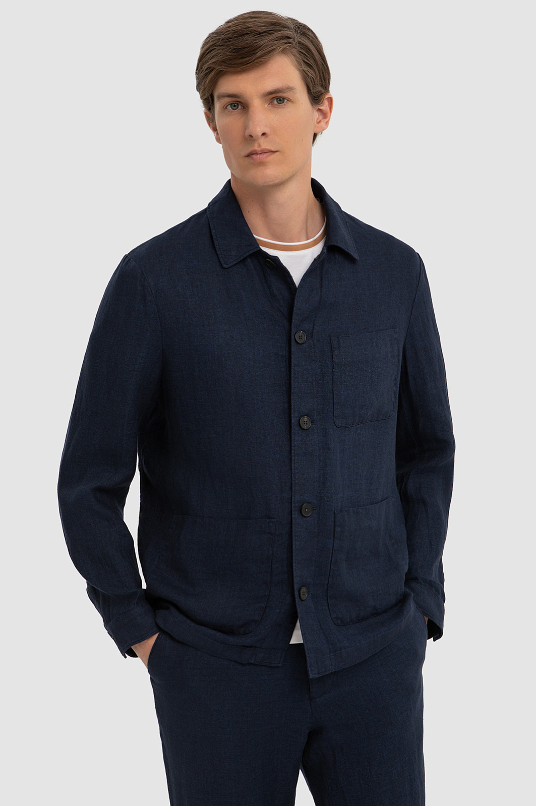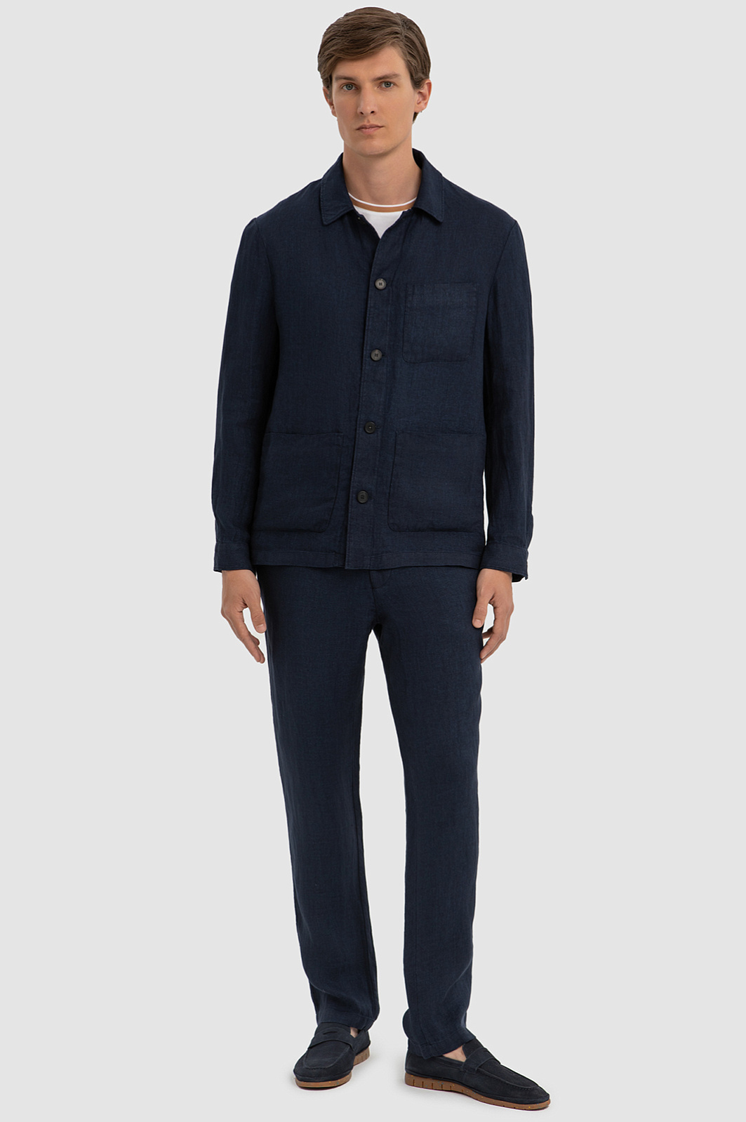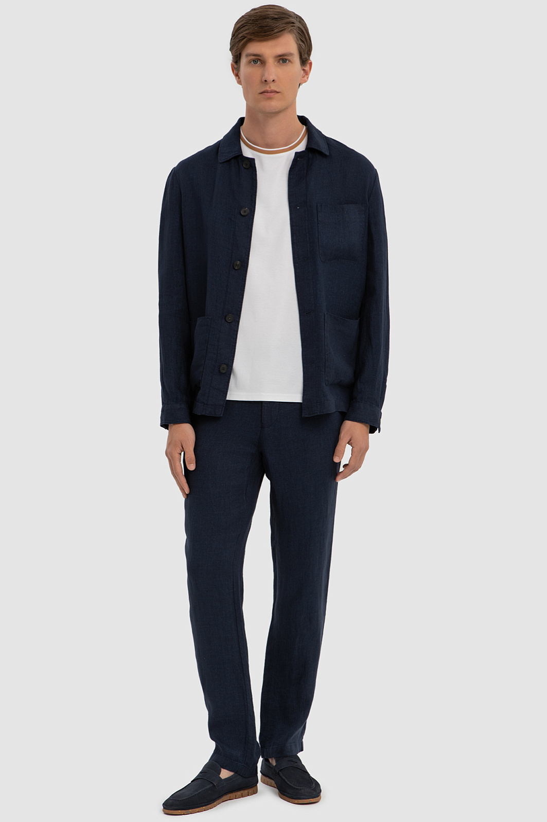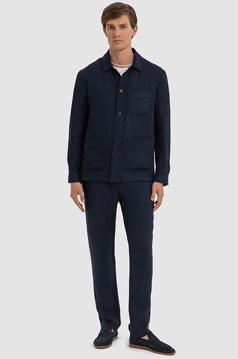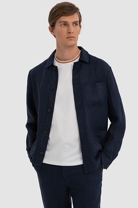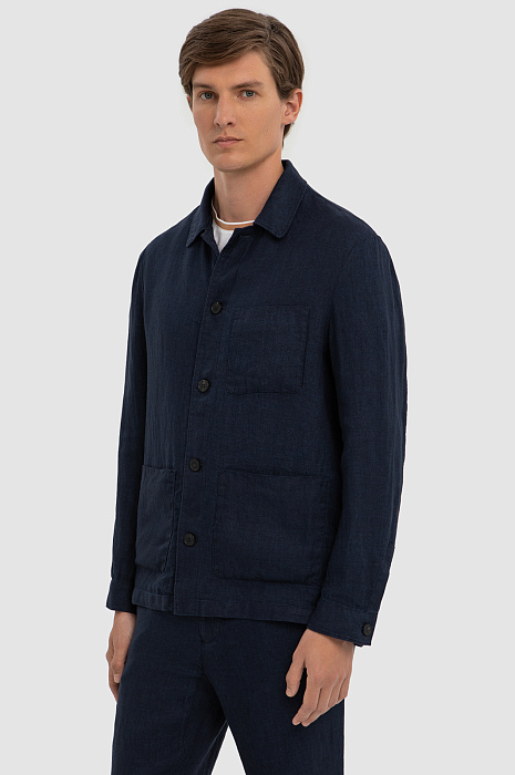 Синий пиджак изо льна и вискозы, цвет синий, цена 126 990 тенге, код 266938 - купить в Астане в интернет-магазине KANZLER