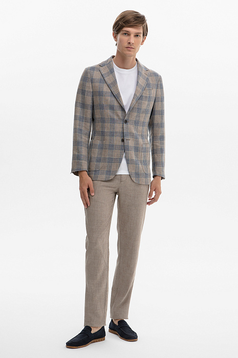 Светло-бежевый пиджак KANZLER лимитированной коллекции изо льна и шерсти выглядит легко, свежо и элегантно. Неброская роскошь заявляет о себе приятным кофейным оттенком с синим принтом «оконная рама» и превосходным дорогим материалом. Премиальная итальянская ткань Drago из льна и шерсти отличается благородным лоском и долговечностью. Сочетание двух видов натуральных волокон защищает тело от перепадов температуры и сохраняет форму. Для этой максимально комфортной модели дизайнеры выбрали просторный Классический крой с двумя шлицами сзади, умеренно широкими проймами рукава и плавным окатом, который дает полную свободу действий. Идеальный вариант для городского отдыха и путешествий. Параметры модели: рост 191, 97-77-99 Размер на модели: 50
