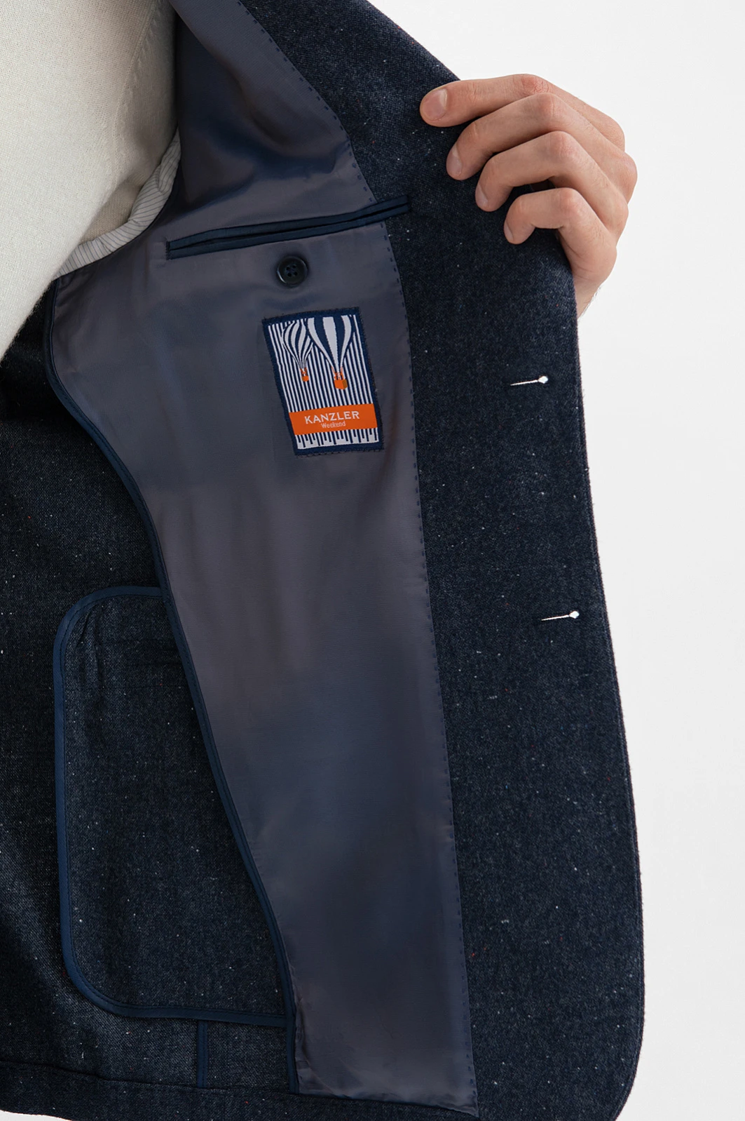 Синий пиджак из хлопка и шерсти, цвет синий, цена 74 950 тенге, код 268340 - купить в Астане в интернет-магазине KANZLER