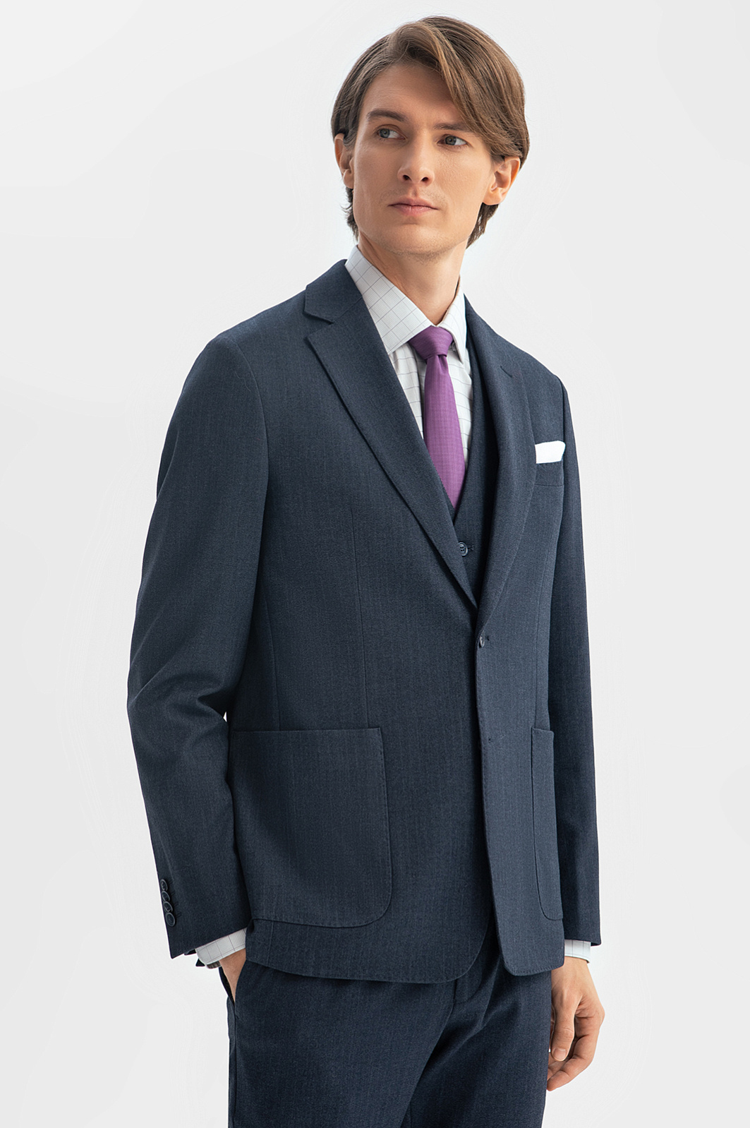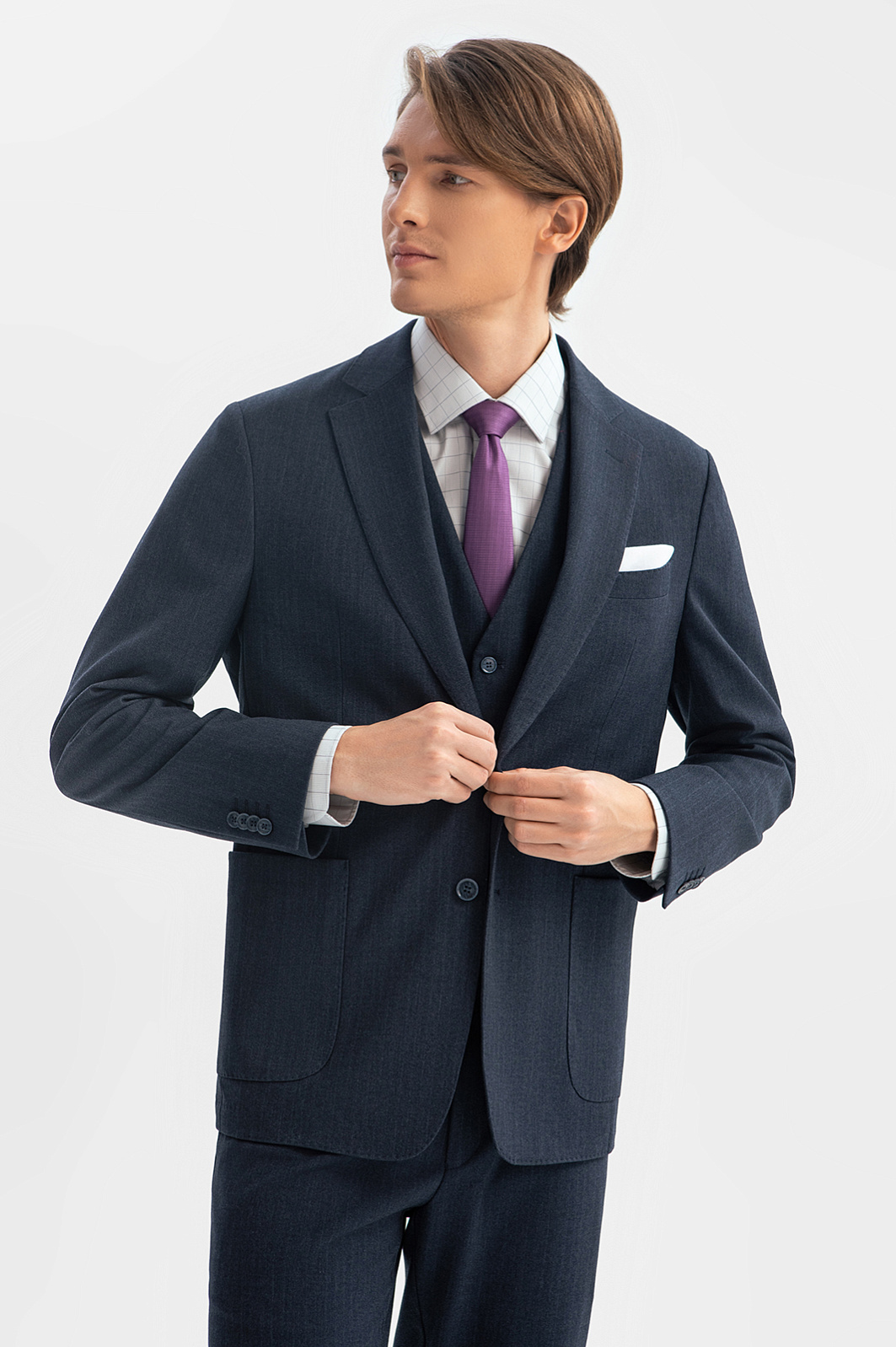 Однобортный серо-синий пиджак KANZLER — сочетание элегантности, практичности и комфорта. Его сдержанный характер идеально подойдет для офиса. Секрет хорошей посадки — в умеренно свободном крое, благодаря которому пиджак великолепно смотрится на фигуре любого типа и, при желании, может быть дополнен костюмным жилетом. Практичная смесовая ткань состоит из трех видов волокон и отличается прочностью, износоустойчивостью и эластичностью. Материал хорошо держит форму и адаптируется к индивидуальным особенностям фигуры. Для создания повседневного офисного костюма пиджак можно дополнить серо-синими брюками KANZLER. Параметры модели: рост 191, 97-77-99 Размер на модели: 50