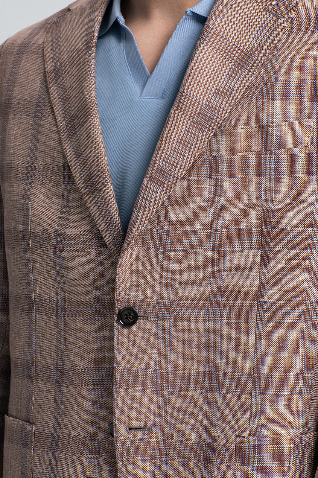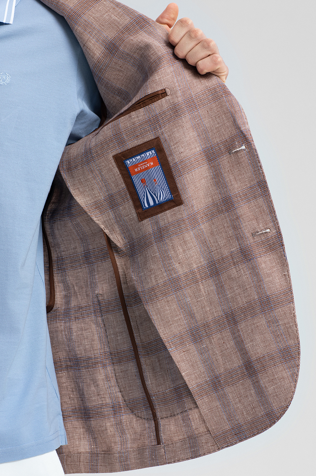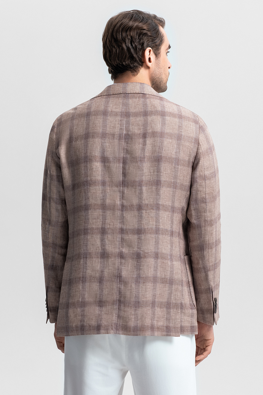 Светло-коричневый пиджак KANZLER – симбиоз элегантности и расслабленного европейского стиля. Классическая однобортная модель с мягкими скругленными линиями карманов и подола создает универсальный образ для деловых встреч, города и путешествий. Материал – 100% благородный натуральный лен – дарит ощущение прохлады в жаркий день и сохраняет тепло в ветреную погоду. Классический крой со свободным прилеганием подходит для любого типа фигуры, легко комбинируется с рубашками, поло и футболками и обеспечивает комфорт, не стесняя движений. Светло-коричневый оттенок, напоминающий песчаные дюны, дополнен графичным узором «оконная рама» – классической клеткой, которая визуально вытягивает силуэт и добавляет образу динамики. Натуральный состав, безупречный крой и дизайн вне времени – модель станет инвестицией в весенне-летний гардероб. Параметры модели: рост 191, 101-79-101 Размер на модели: 50