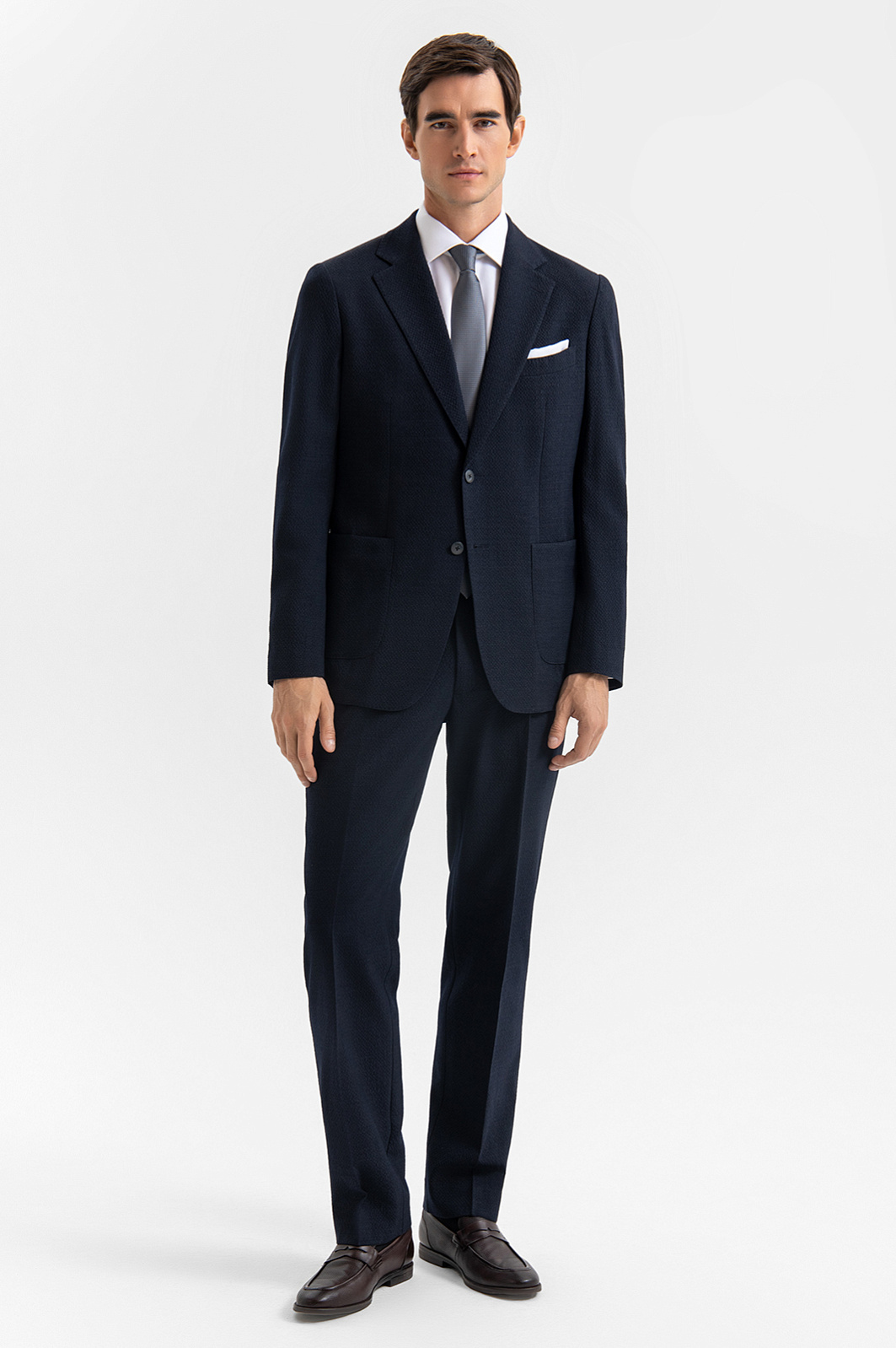 Эффектный темно-синий пиджак KANZLER из фактурной ткани (шерсть Супер 120S) — утончённый образец современной элегантности. Стильный выбор для офиса, деловых поездок и встреч. Приталенный крой подчёркивает фигуру. Благодаря частичной подкладке пиджак остаётся лёгким и адаптивным к динамичному ритму городской жизни. Накладные карманы придают модели современный вид. Фактурность материала делает его более сложным, а пиджак — изысканным и нарядным. Дорогая ткань из тончайших упругих волокон шерсти (97%) бережет не только тепло тела, но и форму пиджака. Небольшая добавка эластана служит хорошей посадке и комфорту при движении. Параметры модели: рост 192, 101-76-97 Размер на модели: 50