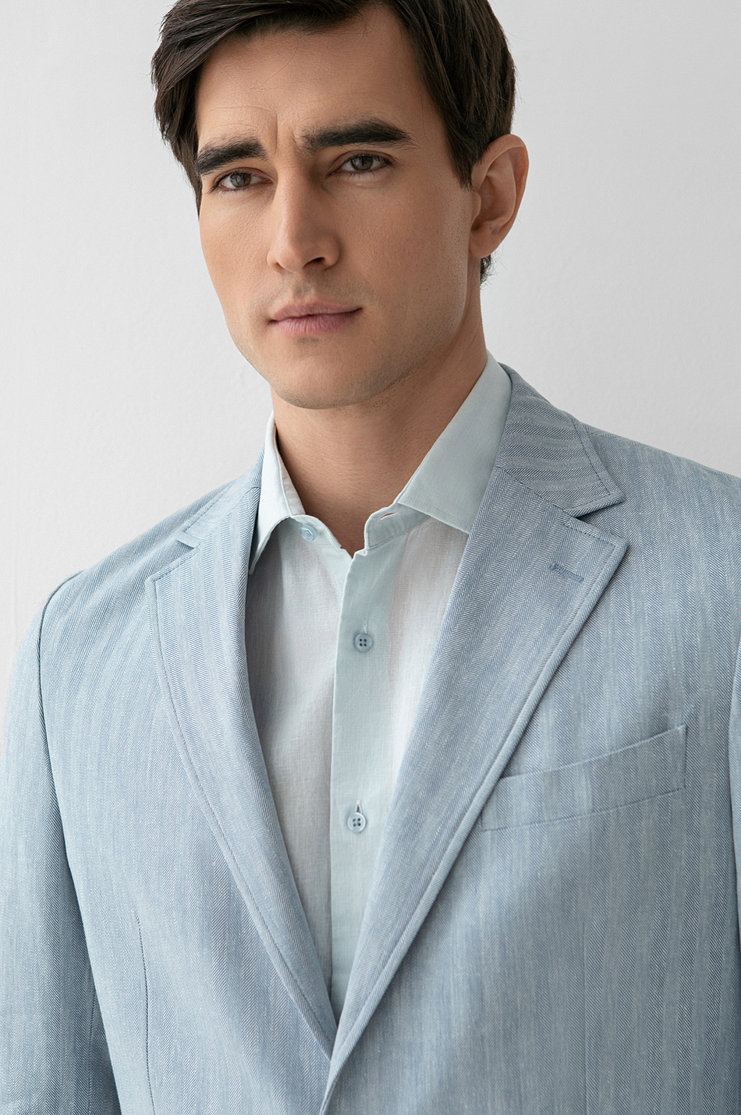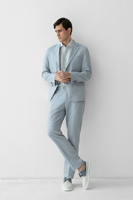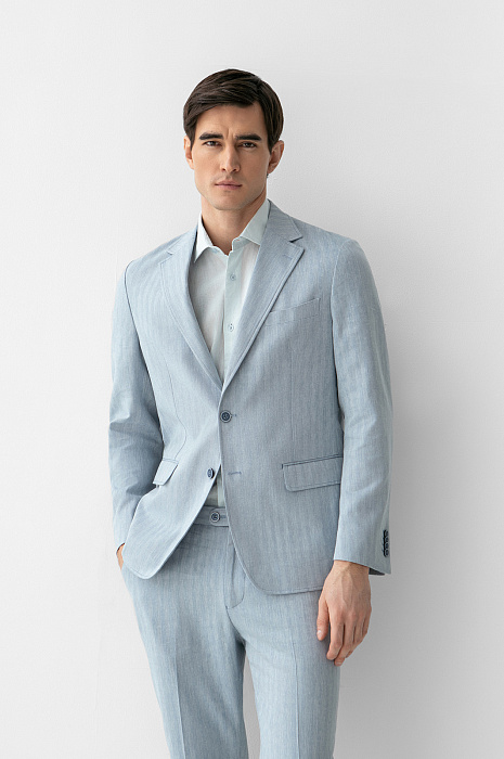 Пиджак из хлопка, льна и вискозы, цвет голубой, цена 174 990 тенге - купить в интернет-магазине KANZLER