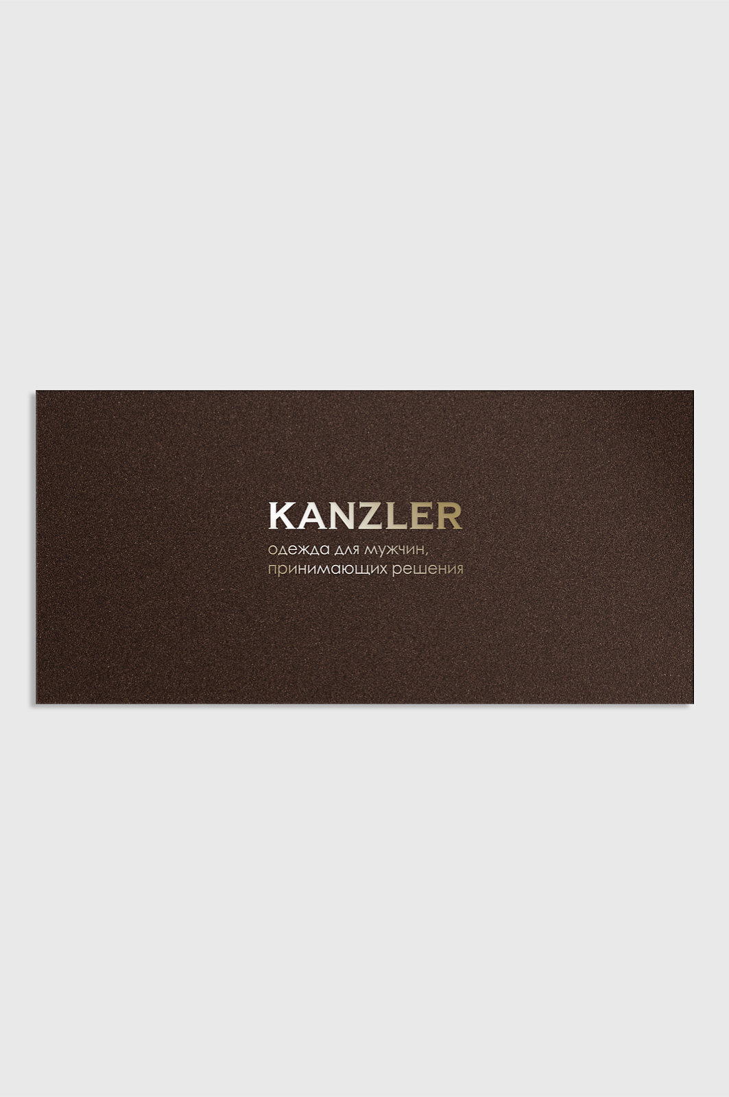 Подарочная карта KANZLER - сочетание подарка и кратчайшего пути к постижению элегантного мужского стиля. Подарочная карта позволит Вам сэкономить своё время, при этом сделать очень практичный и нужный подарок. Наша карта поможет Вам угадать с подарком на все 100% - ведь тот, кому ее дарят, будет самостоятельно совершать покупку и сделает выбор, соответствующий его пожеланиям.